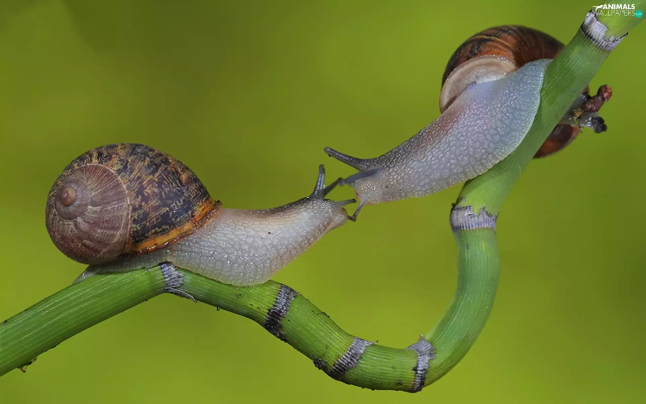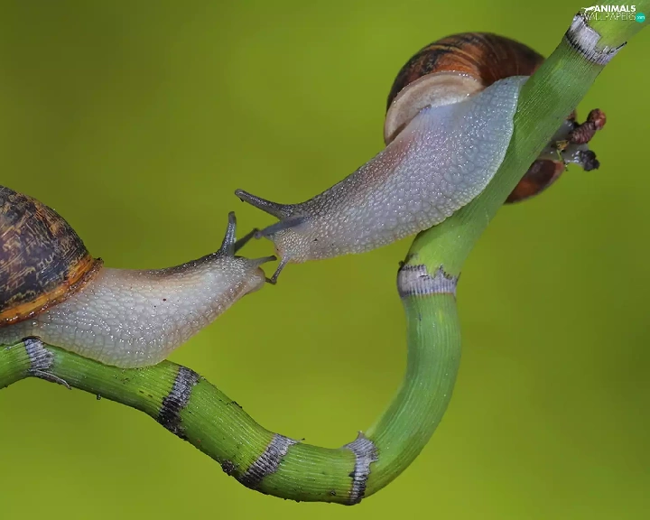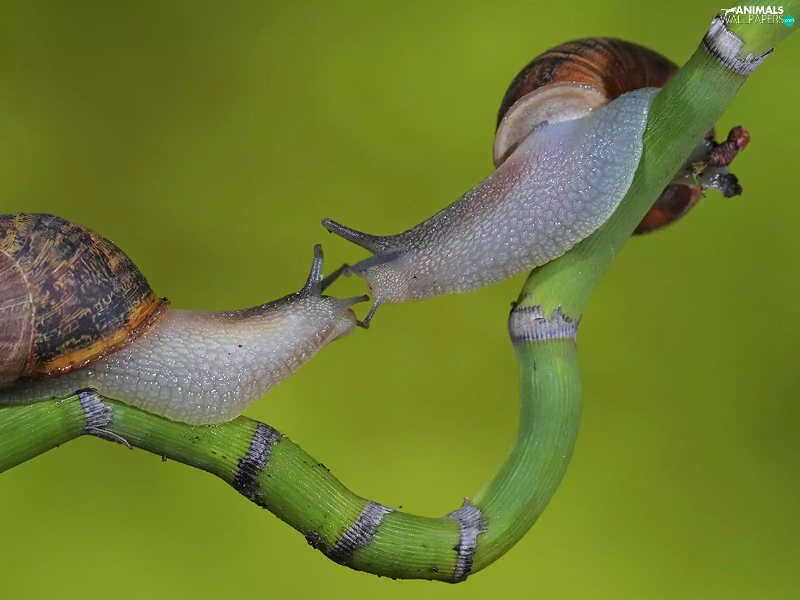twig, Two cars, Snails