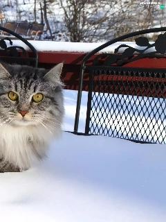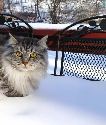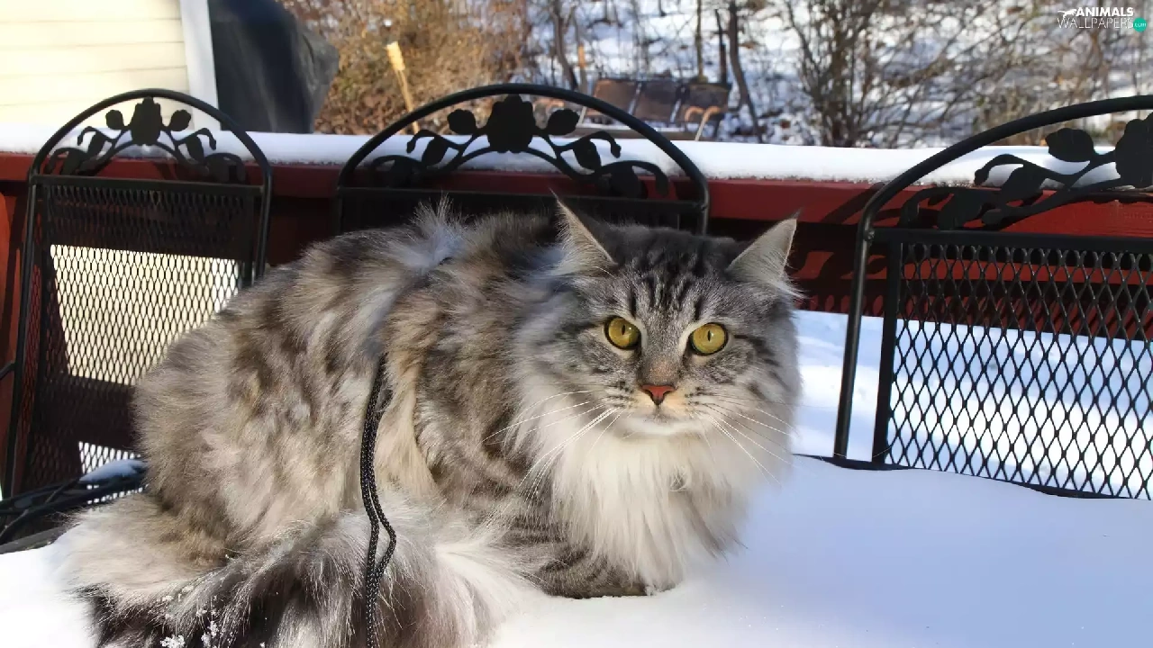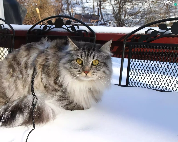snow, kitten, Balcony