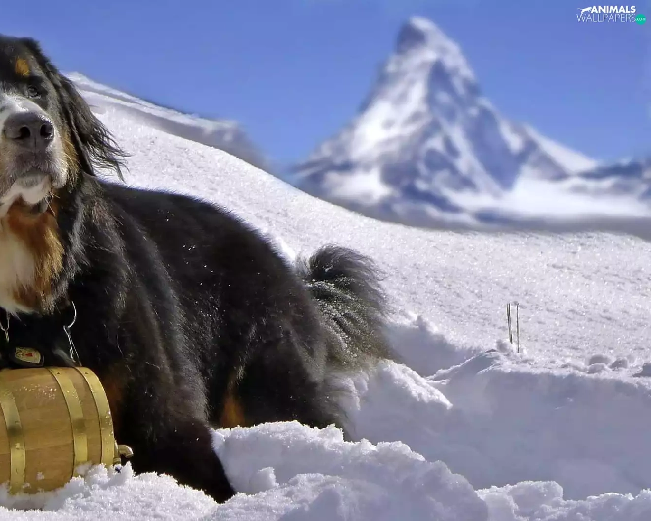 snow, dog, barrel