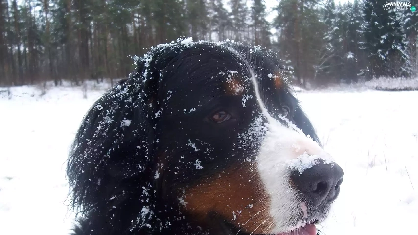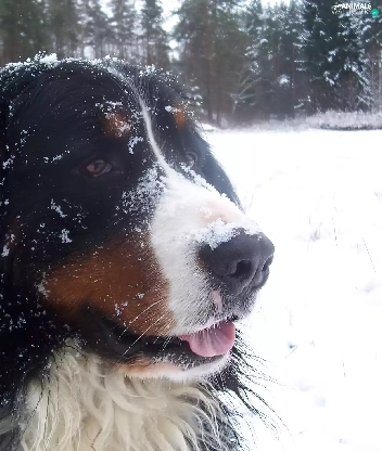 Bernese Mountain Dog, snow