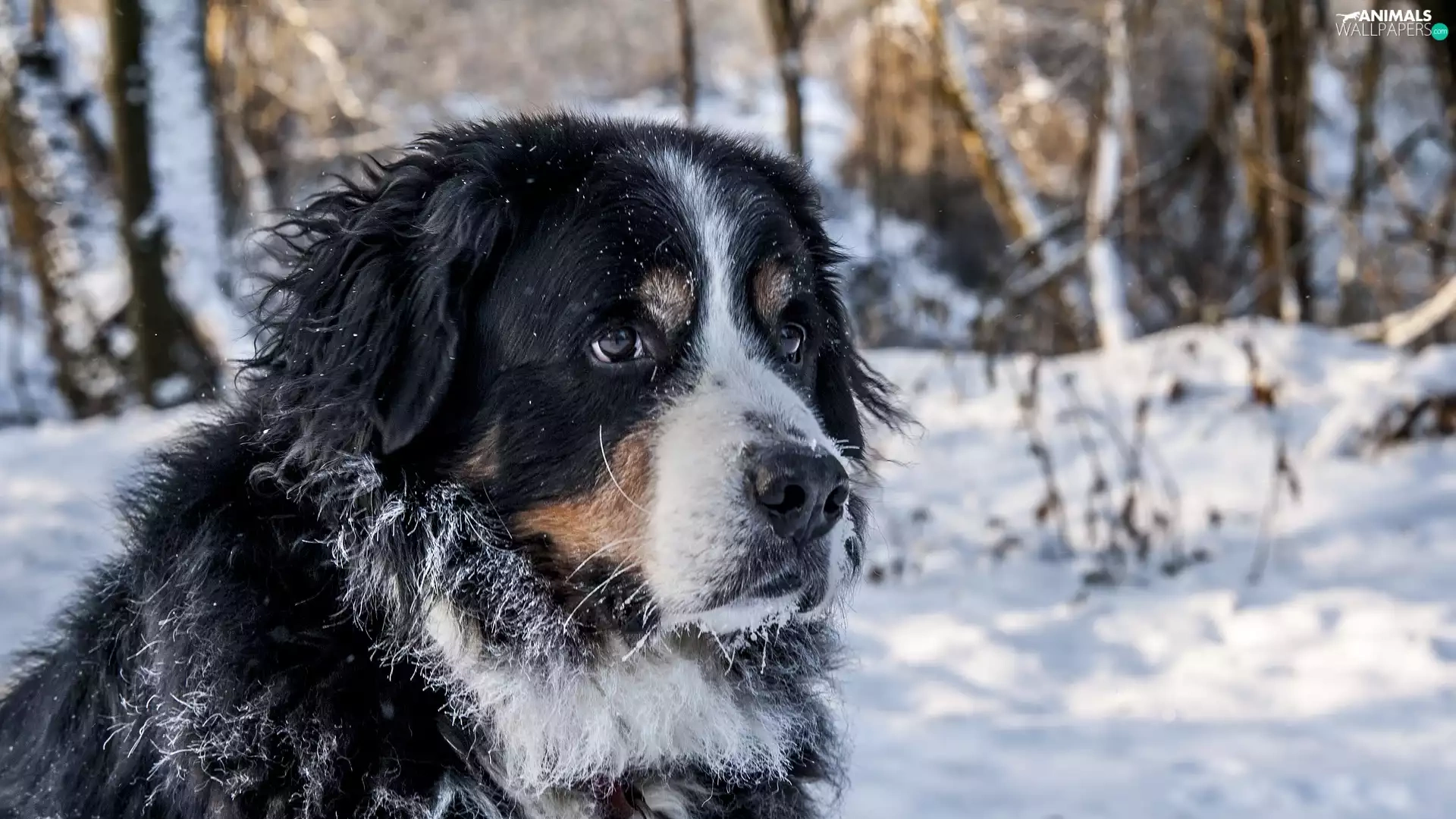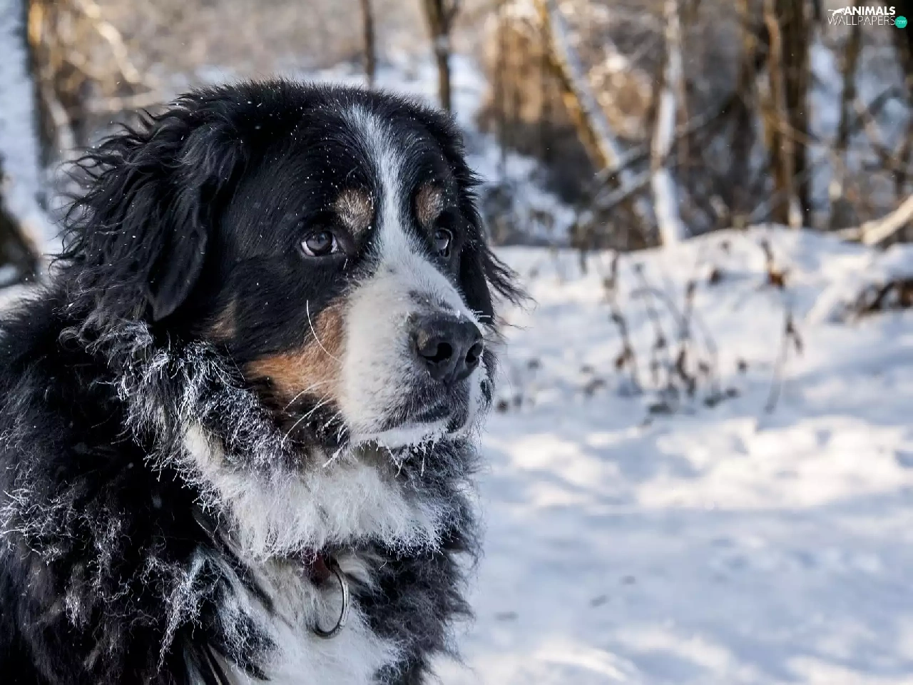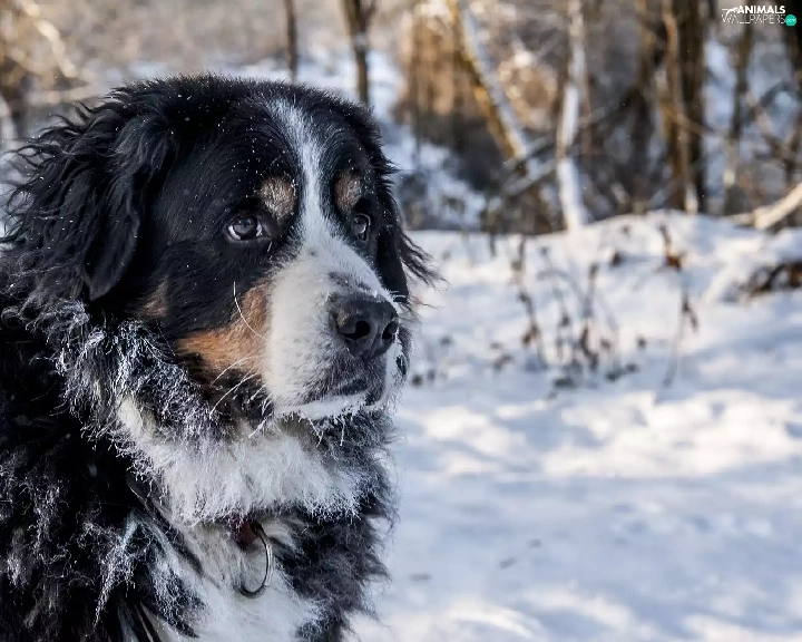 Bernese Mountain Dog, snow