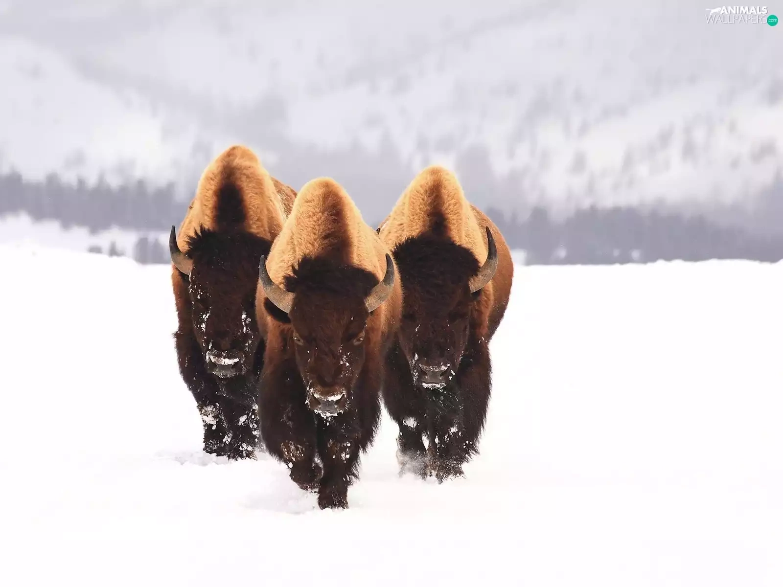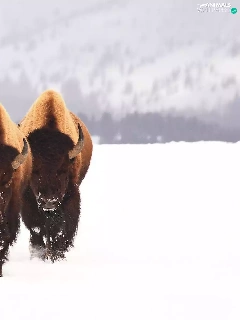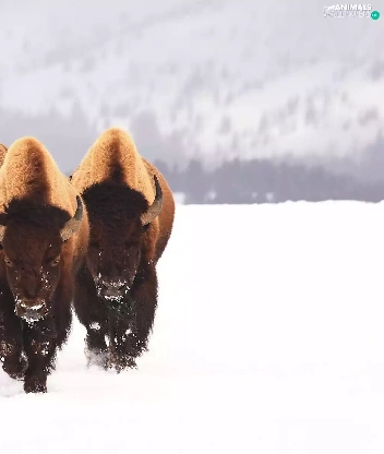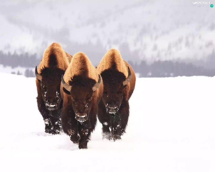 snow, Three, bison