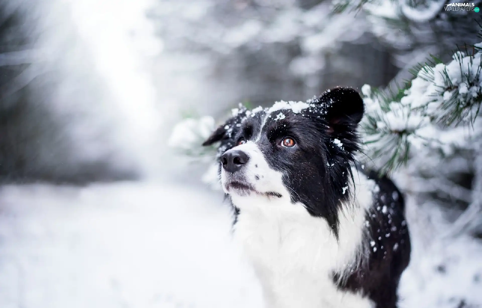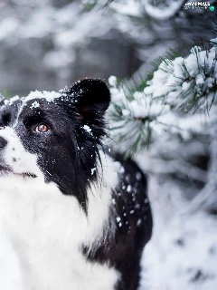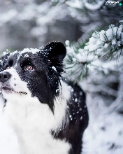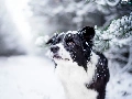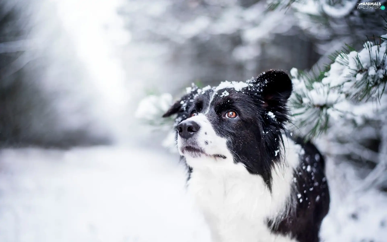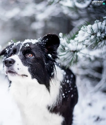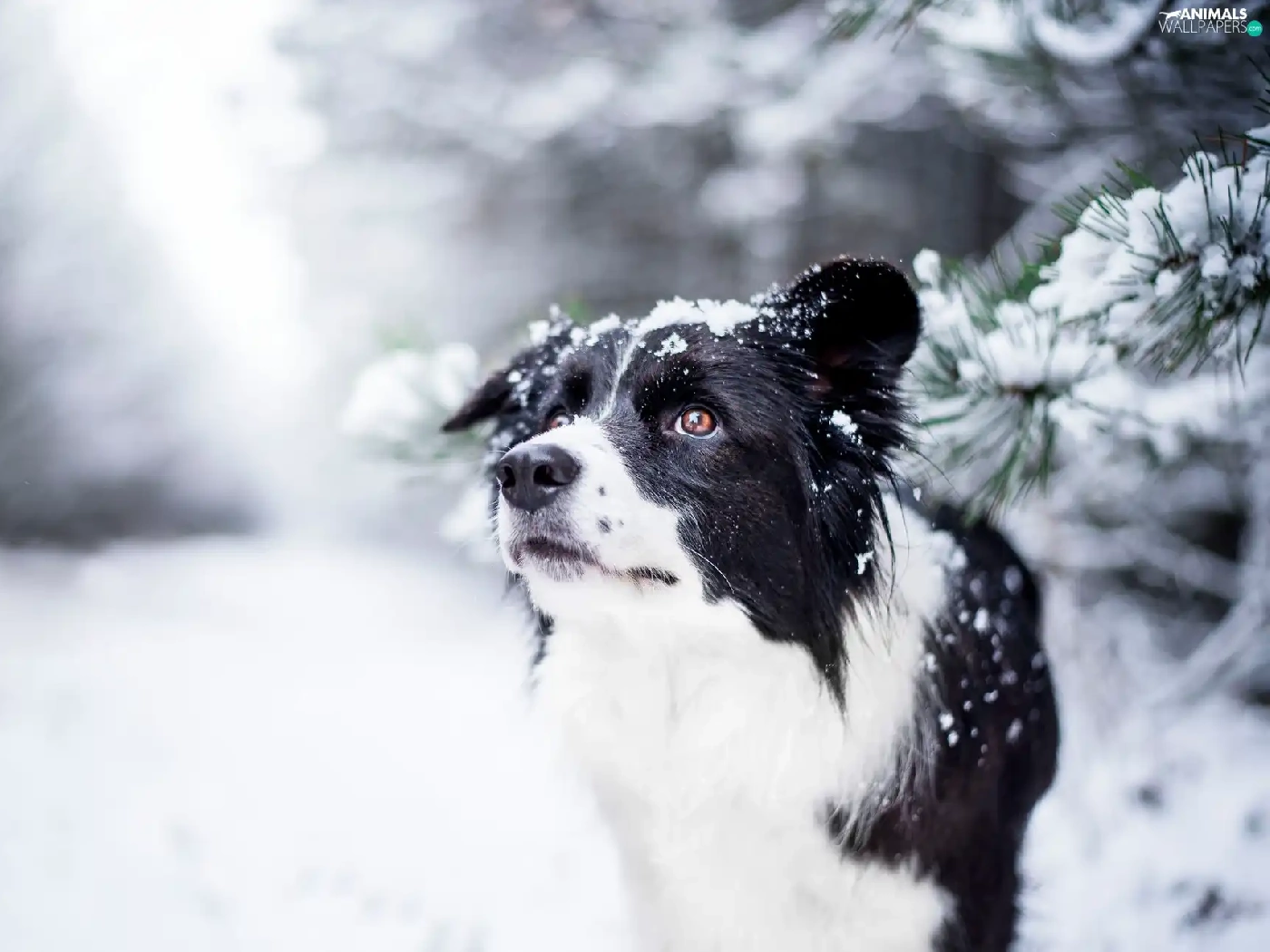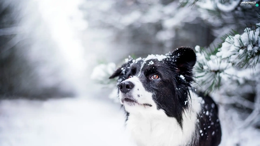 snow, Twigs, Border Collie, winter, dog