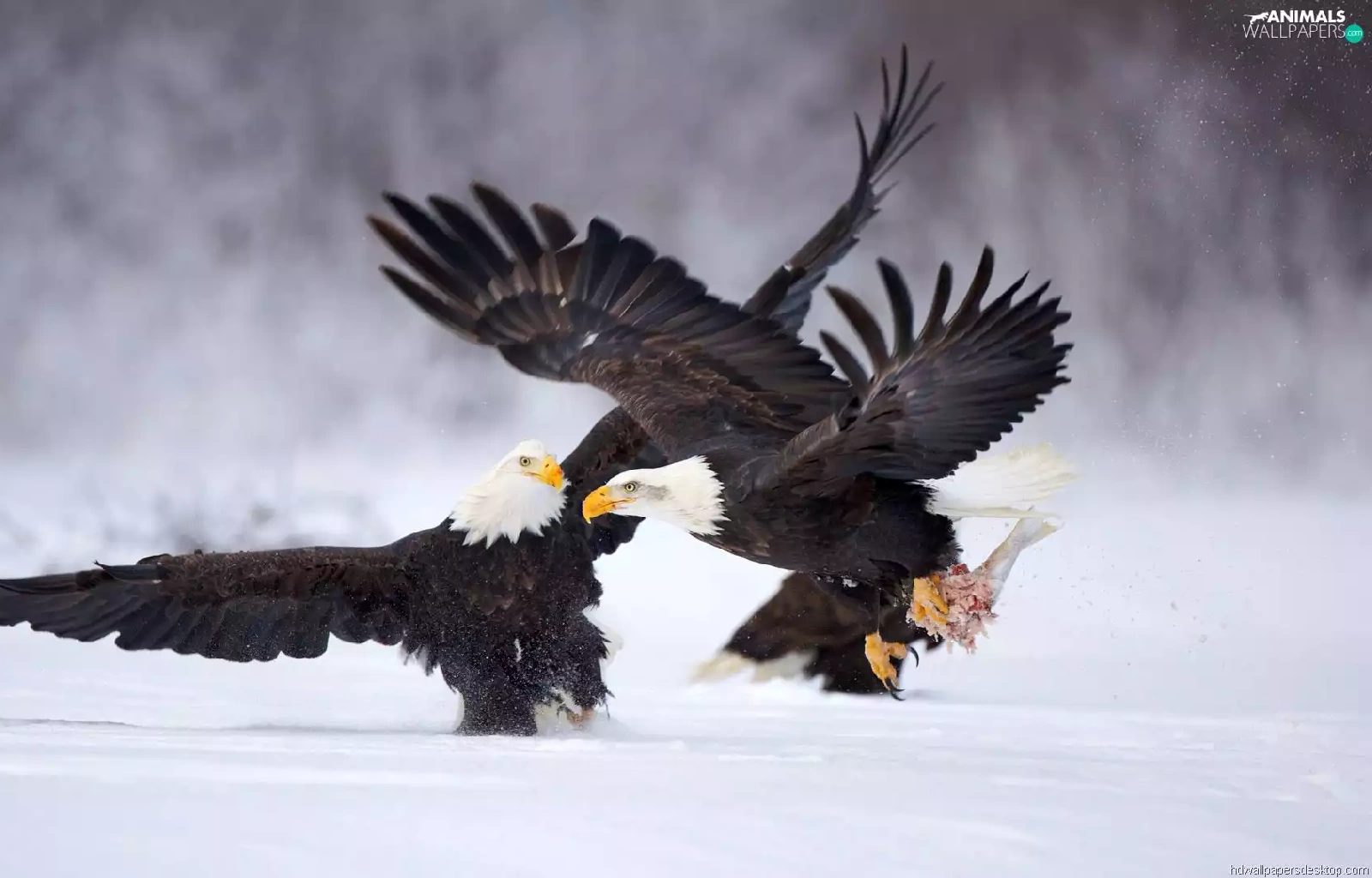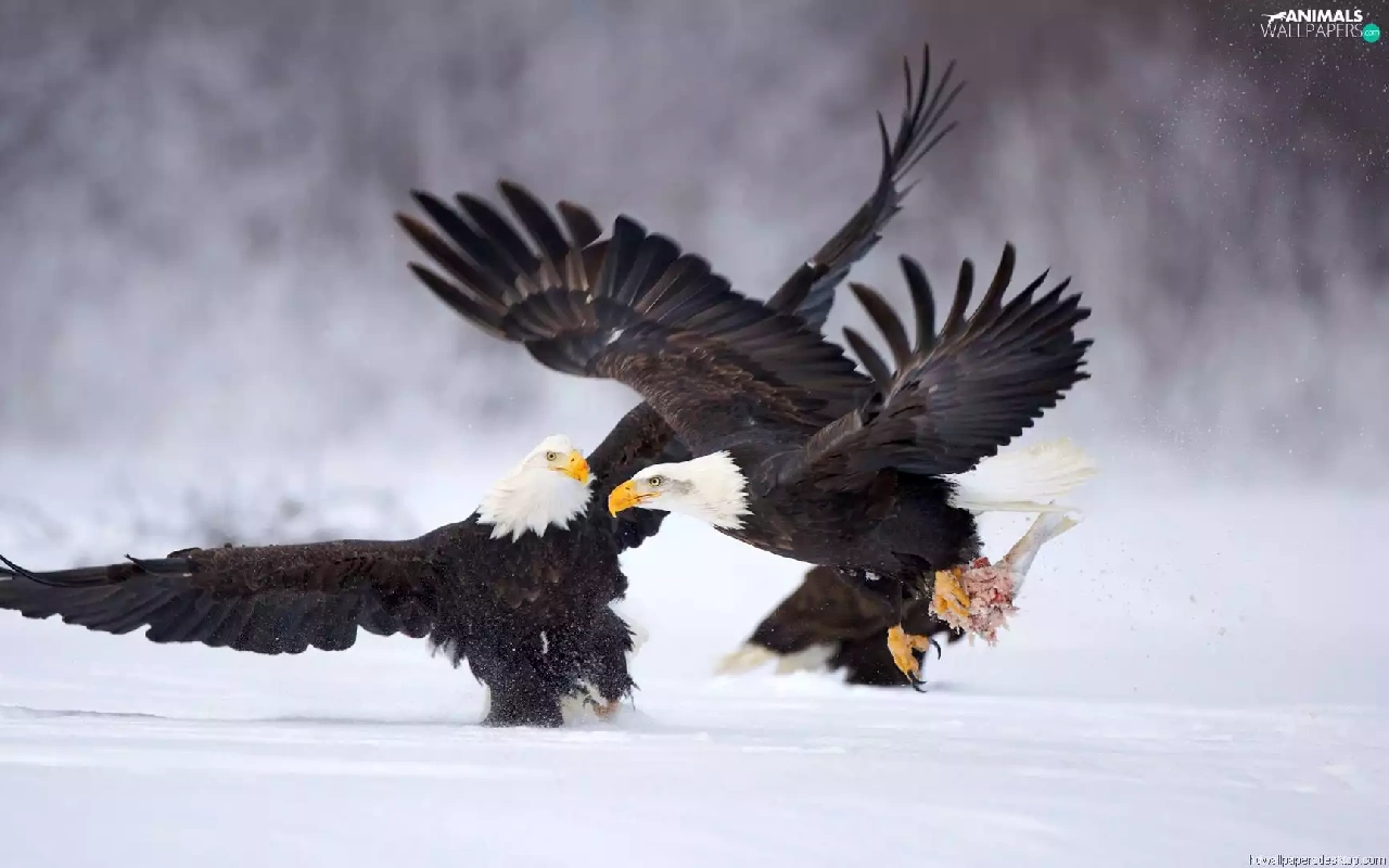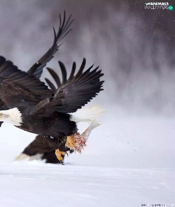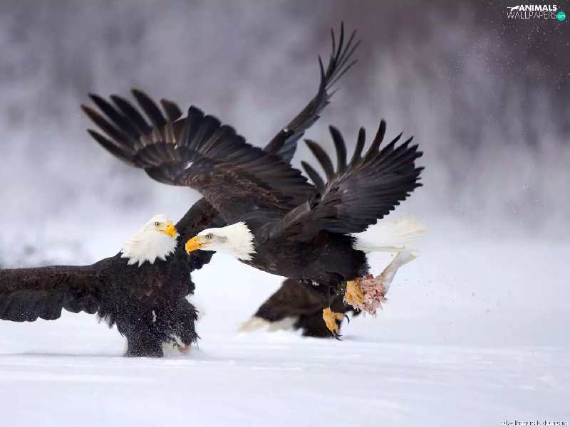 snow, fighting, Eagles