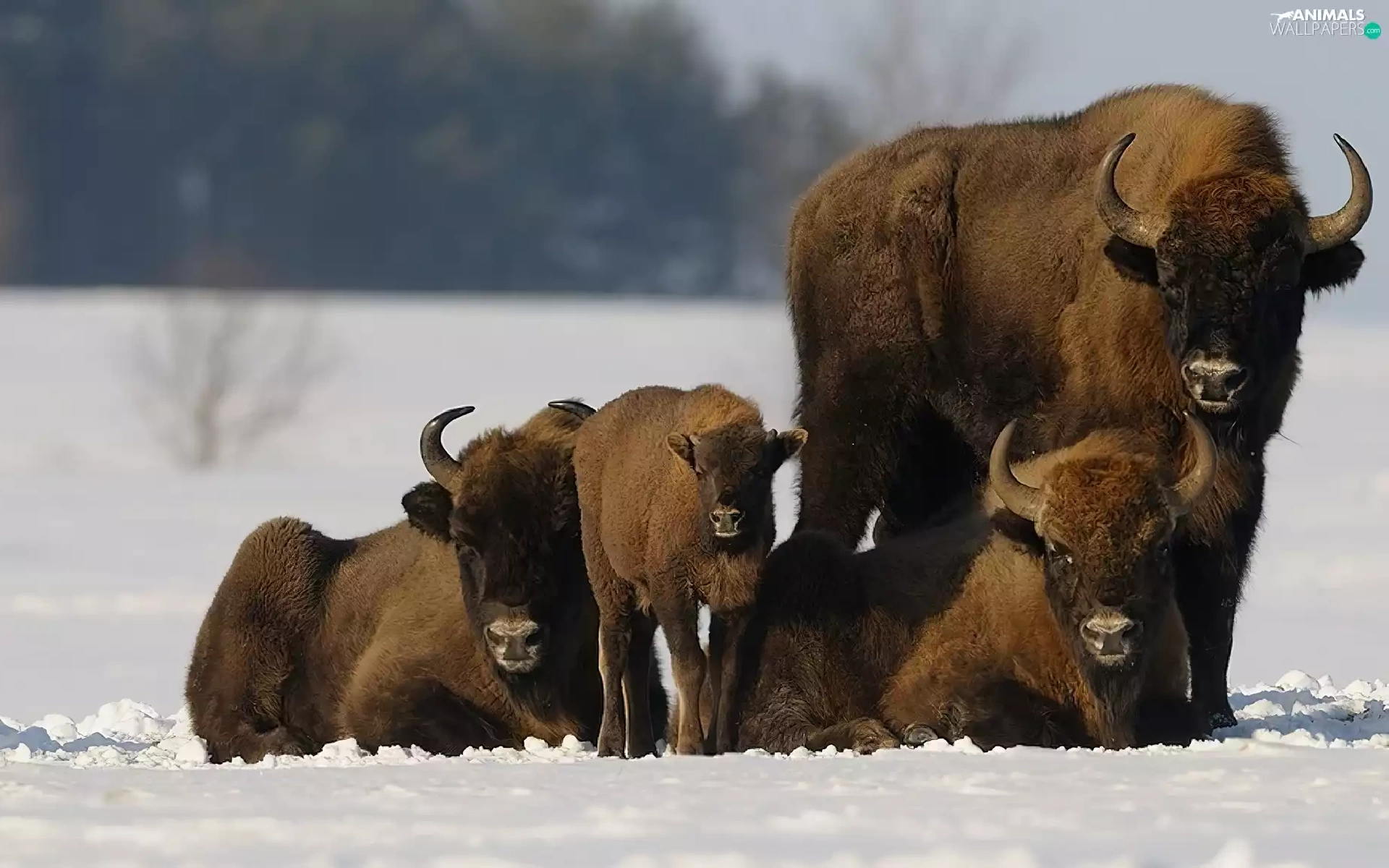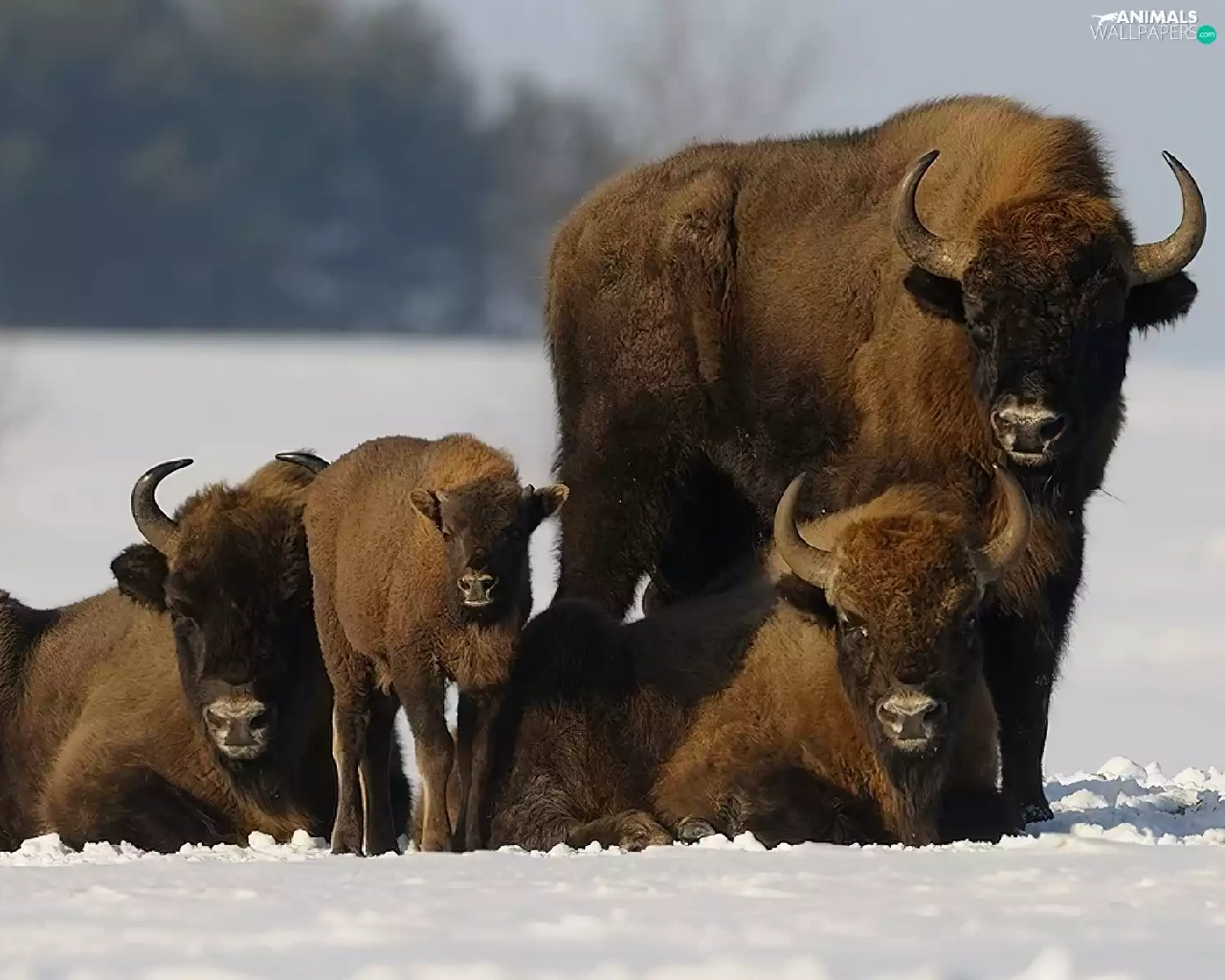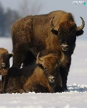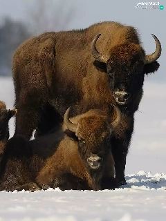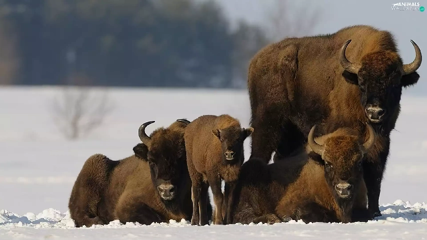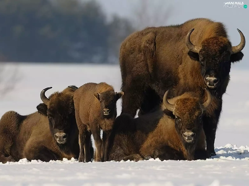 snow, bison, Family