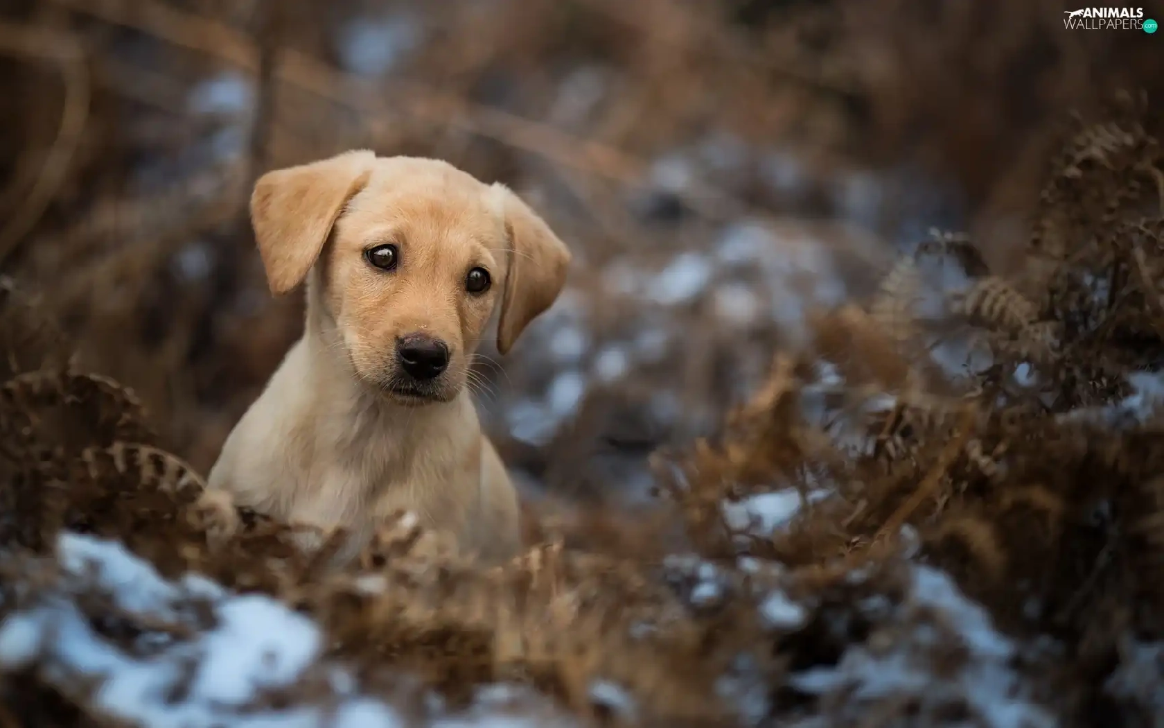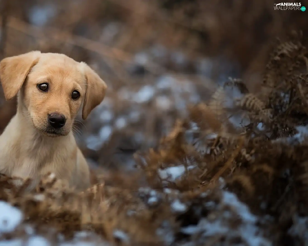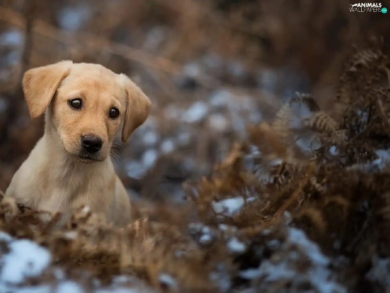 dry, Puppy, Fern, snow, Leaf, Labrador Retriever