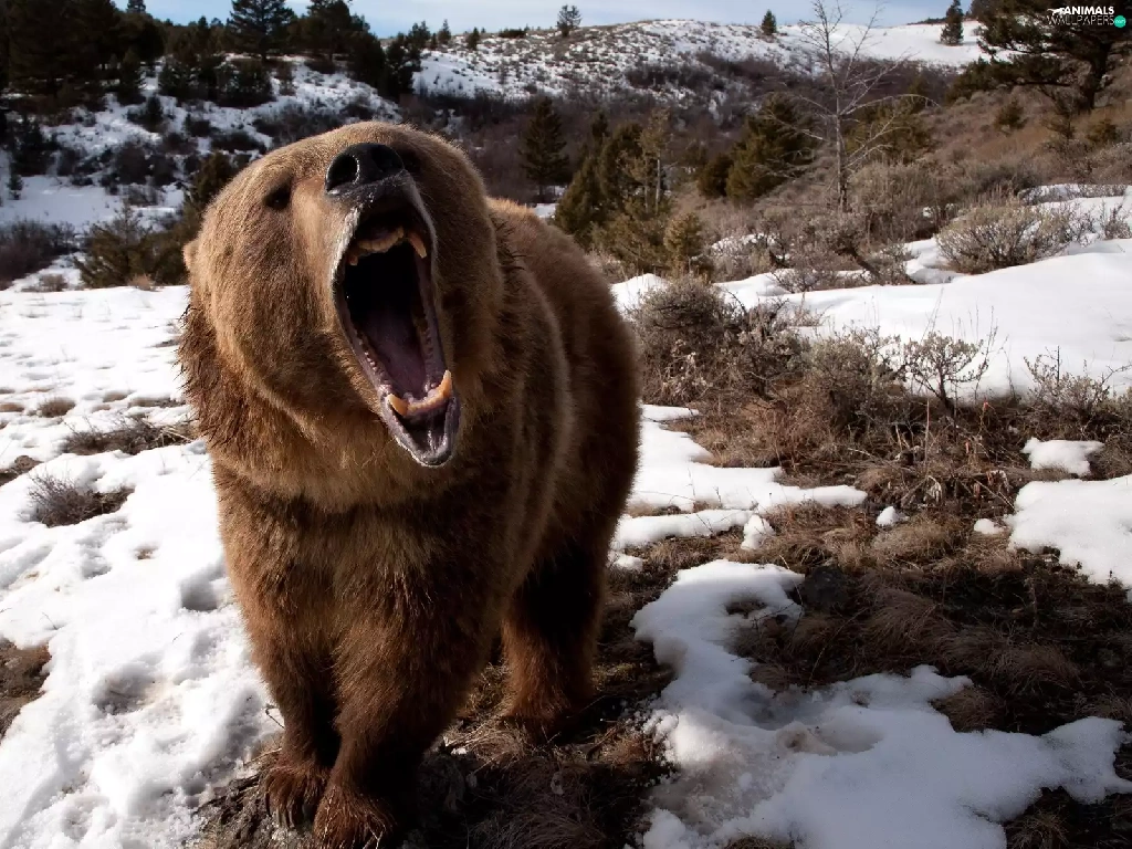 snow, Bear, forest