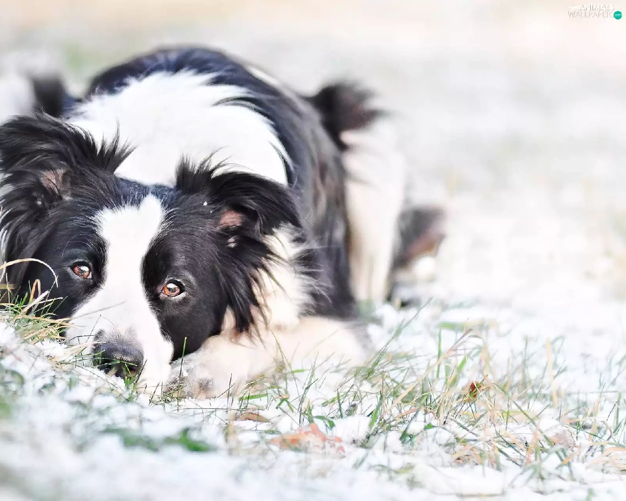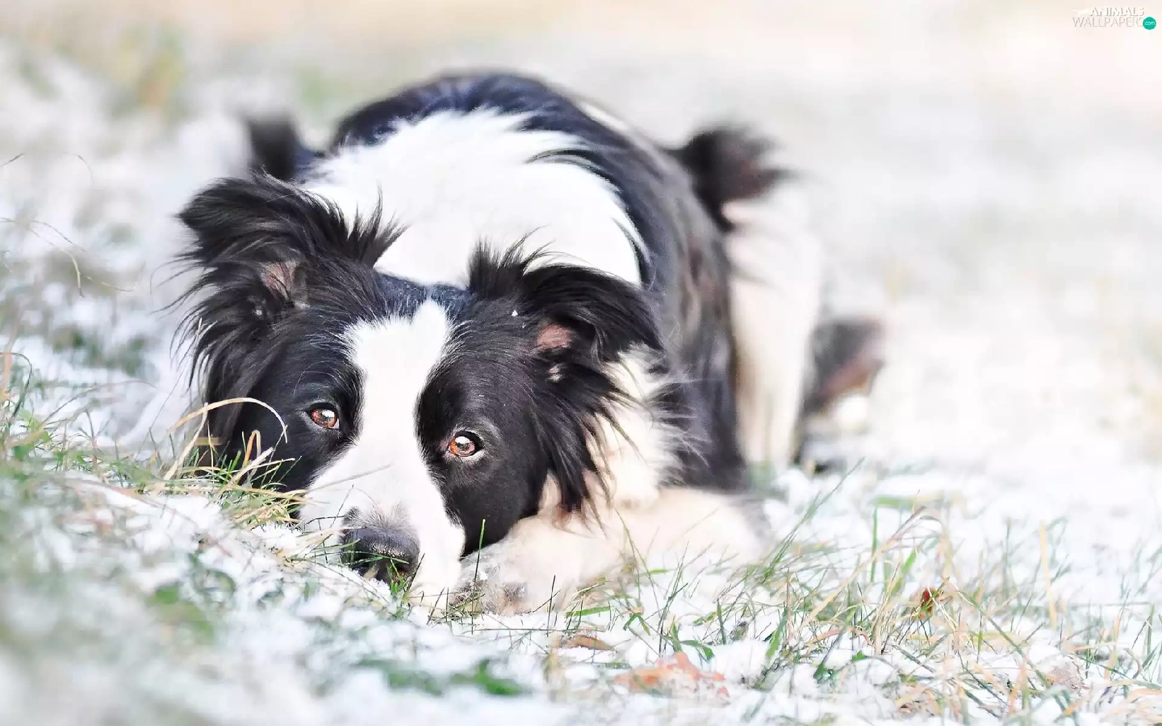 dog, snow, grass, Border Collie