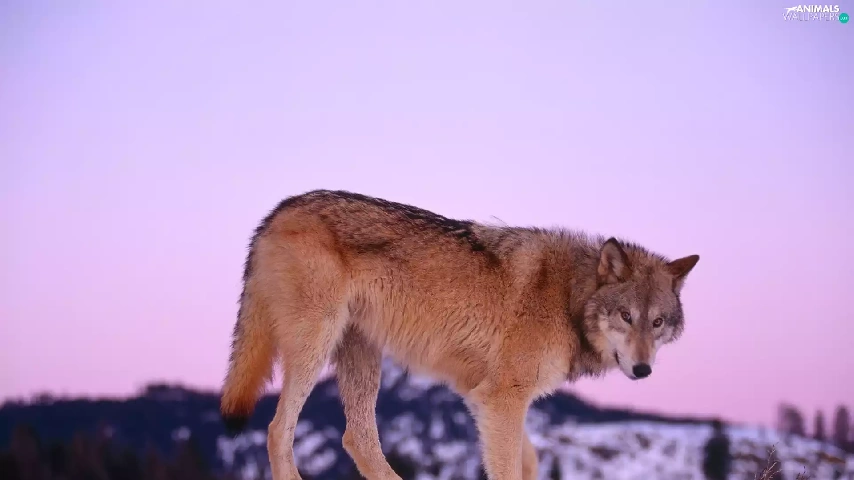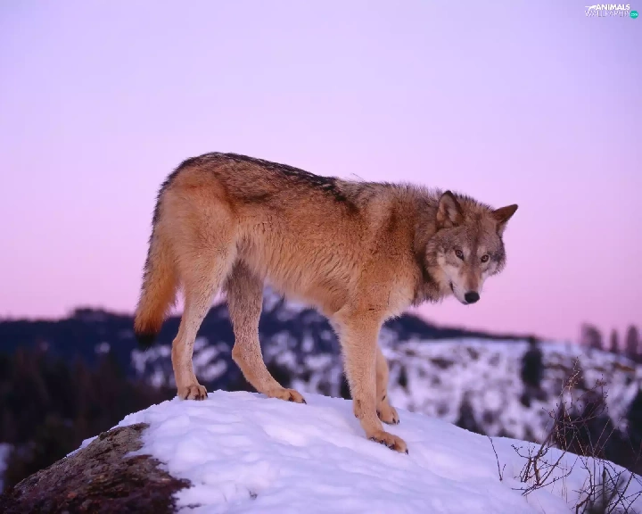 snow, Wolf, hill