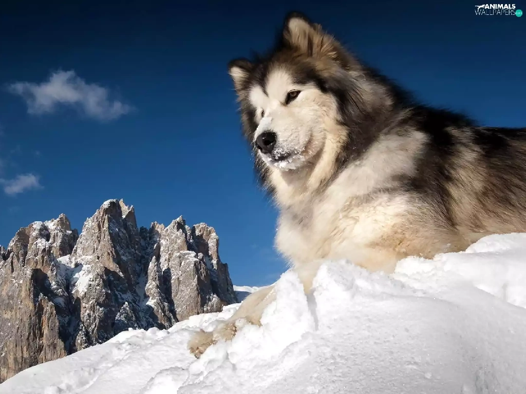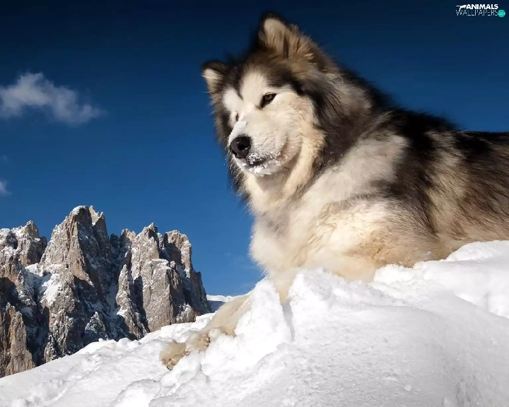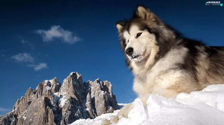 Mountains, snow, Husky, winter, Siberian