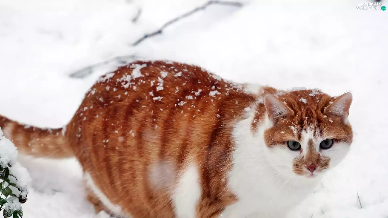 snow, ginger, kitten