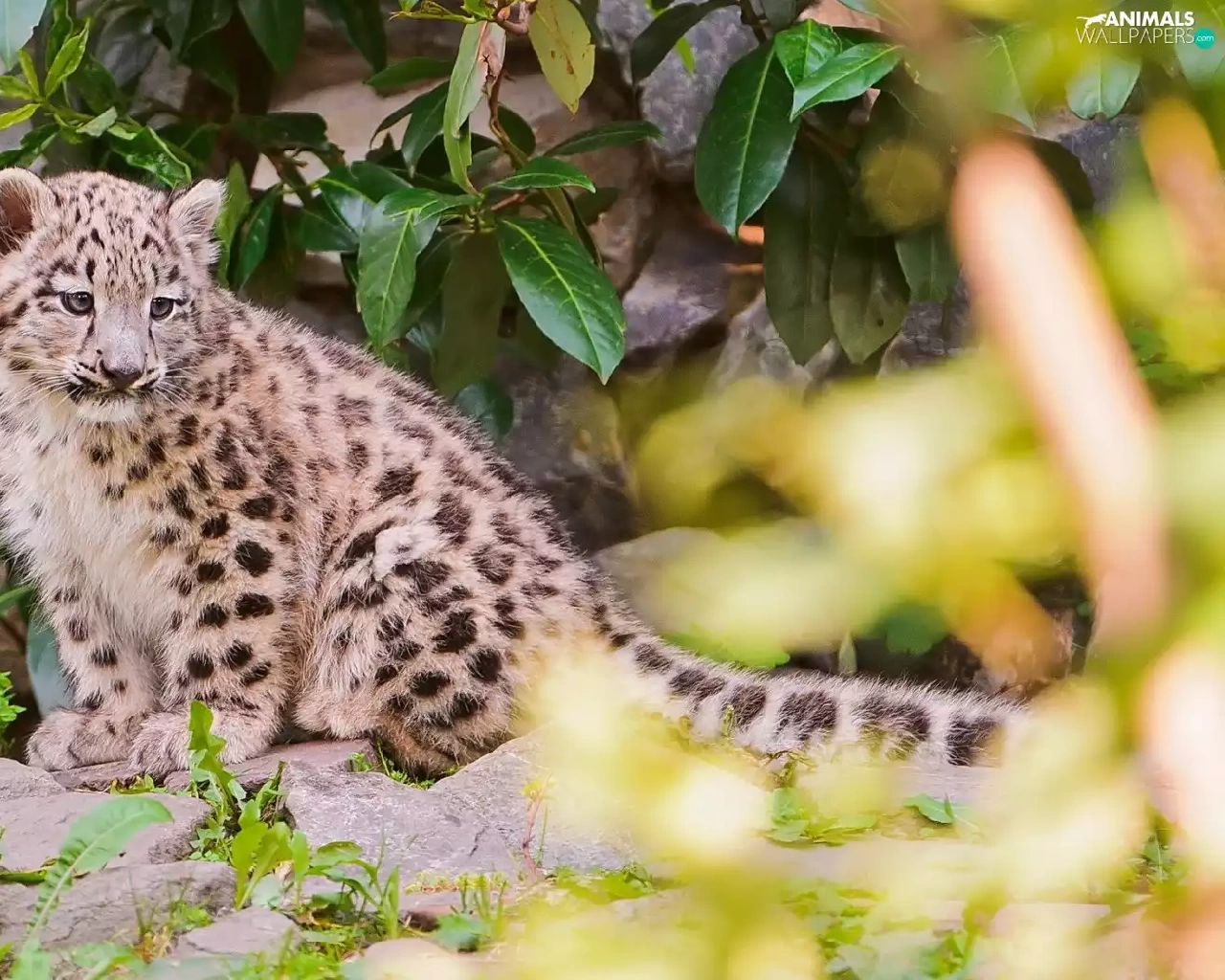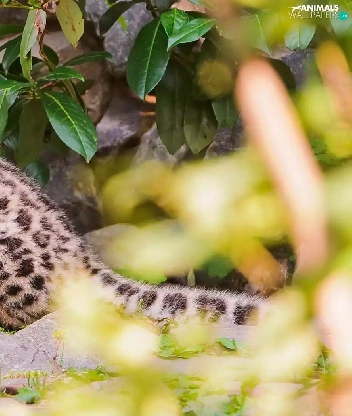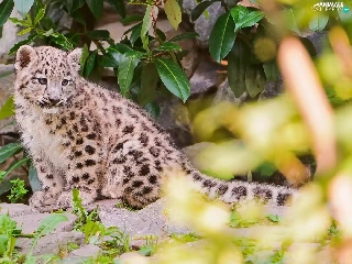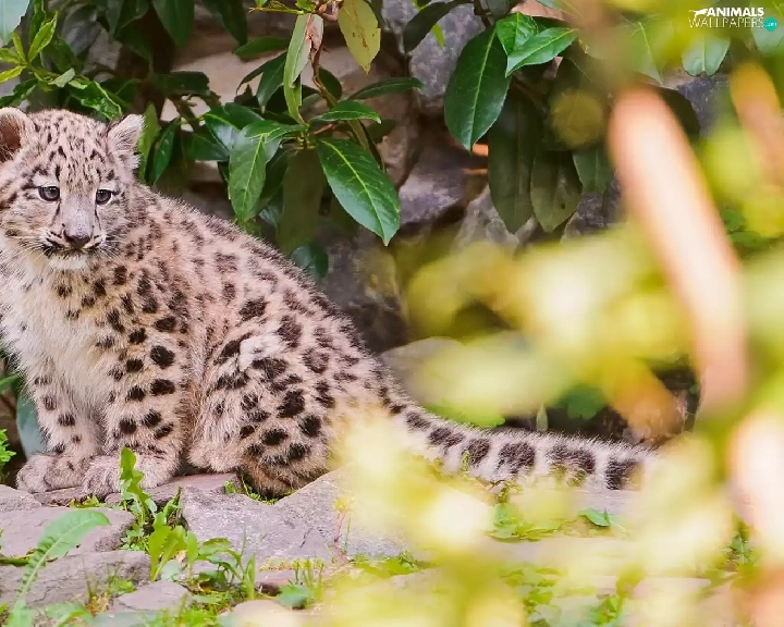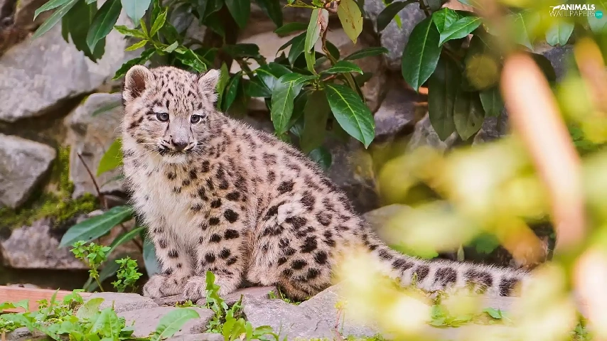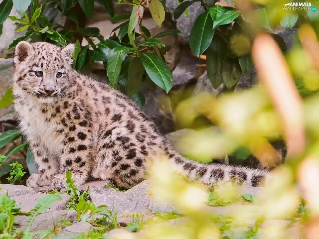 small, snow leopard, leaves, snowy