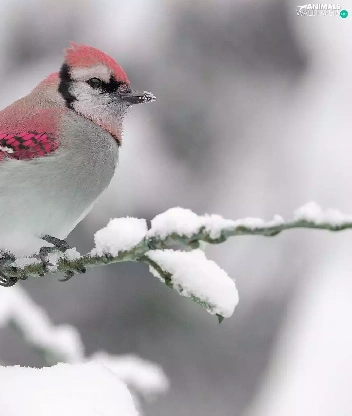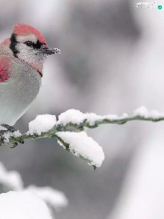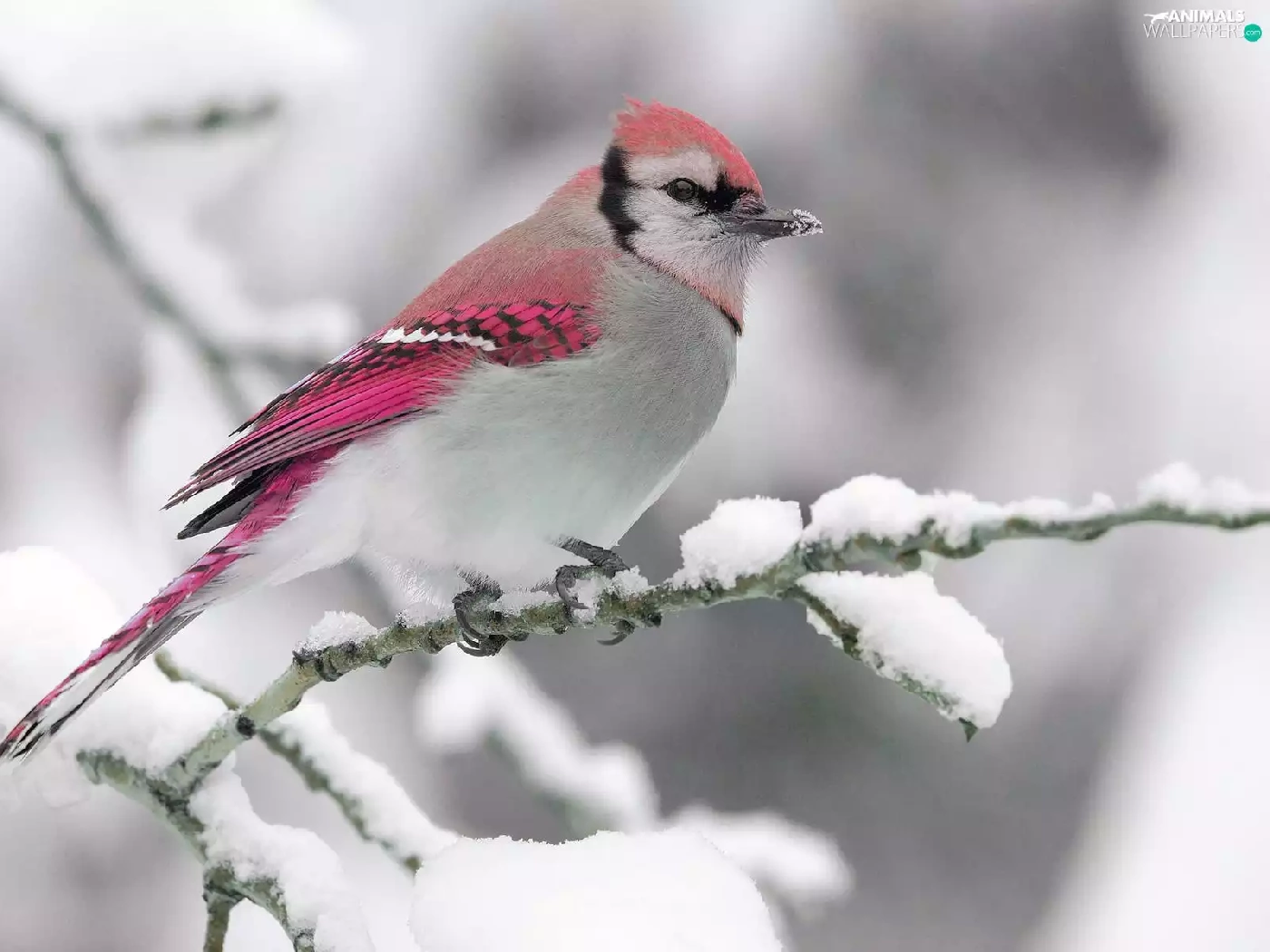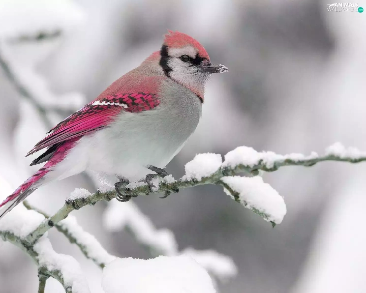 twig, snow, Pink, Bird, white