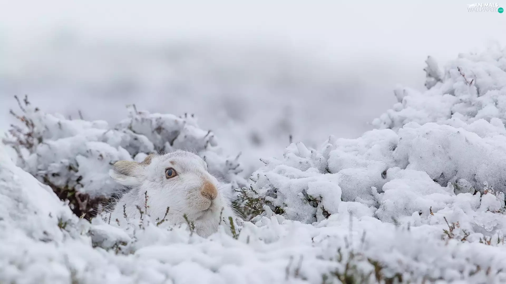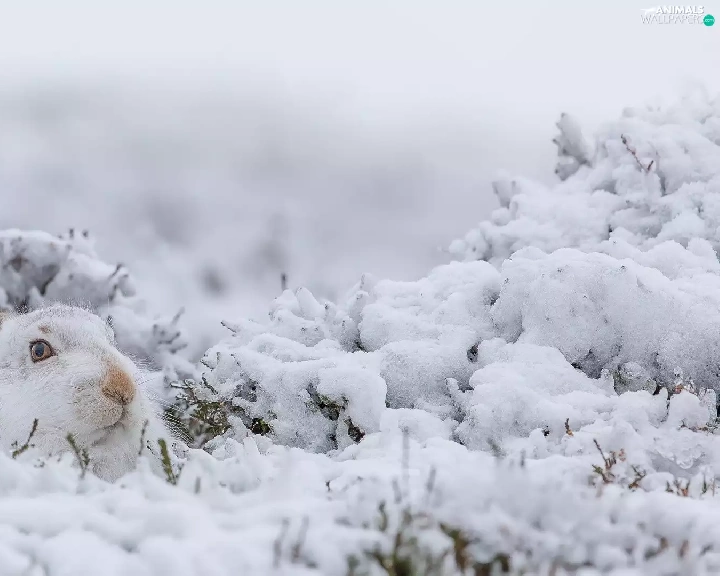 White, snow, Plants, Wild Rabbit