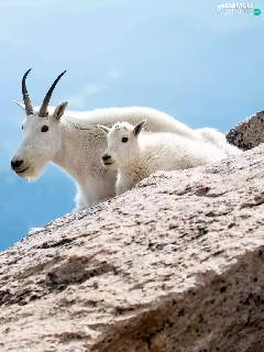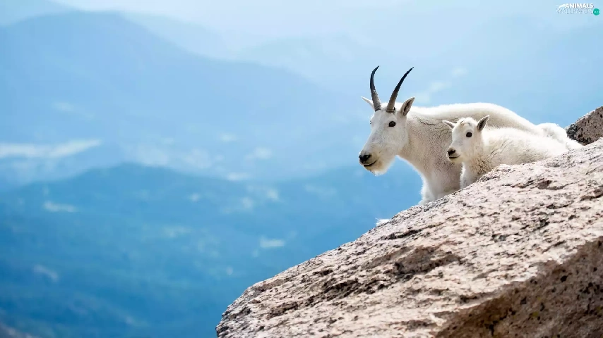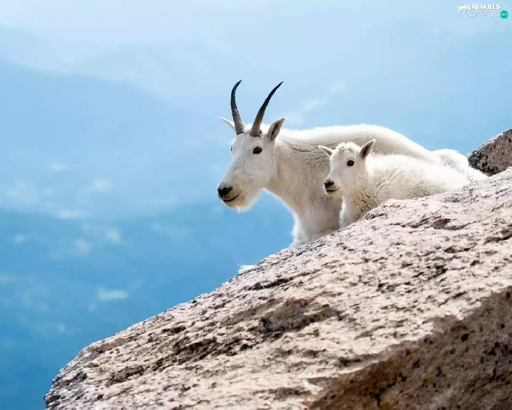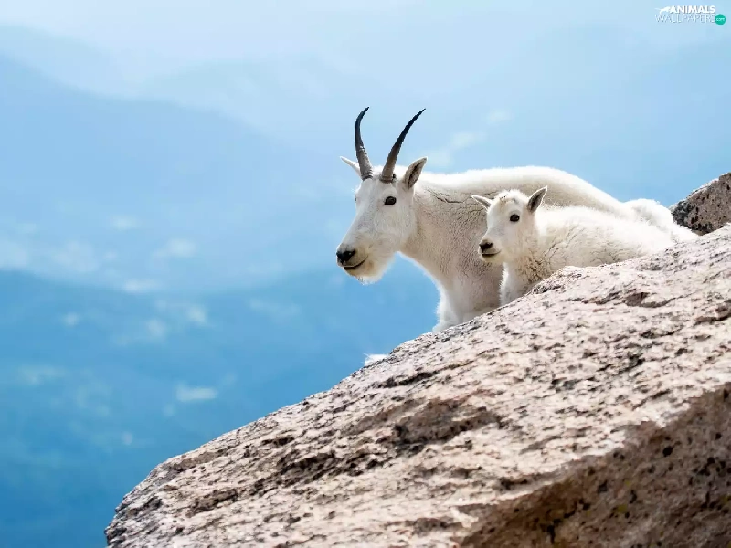 Snow Goats, rocks
