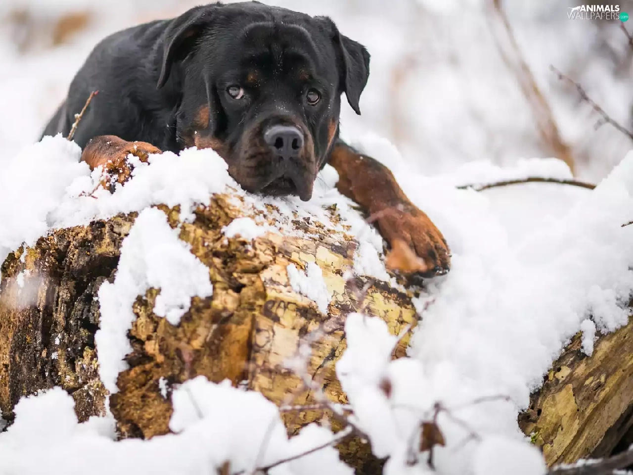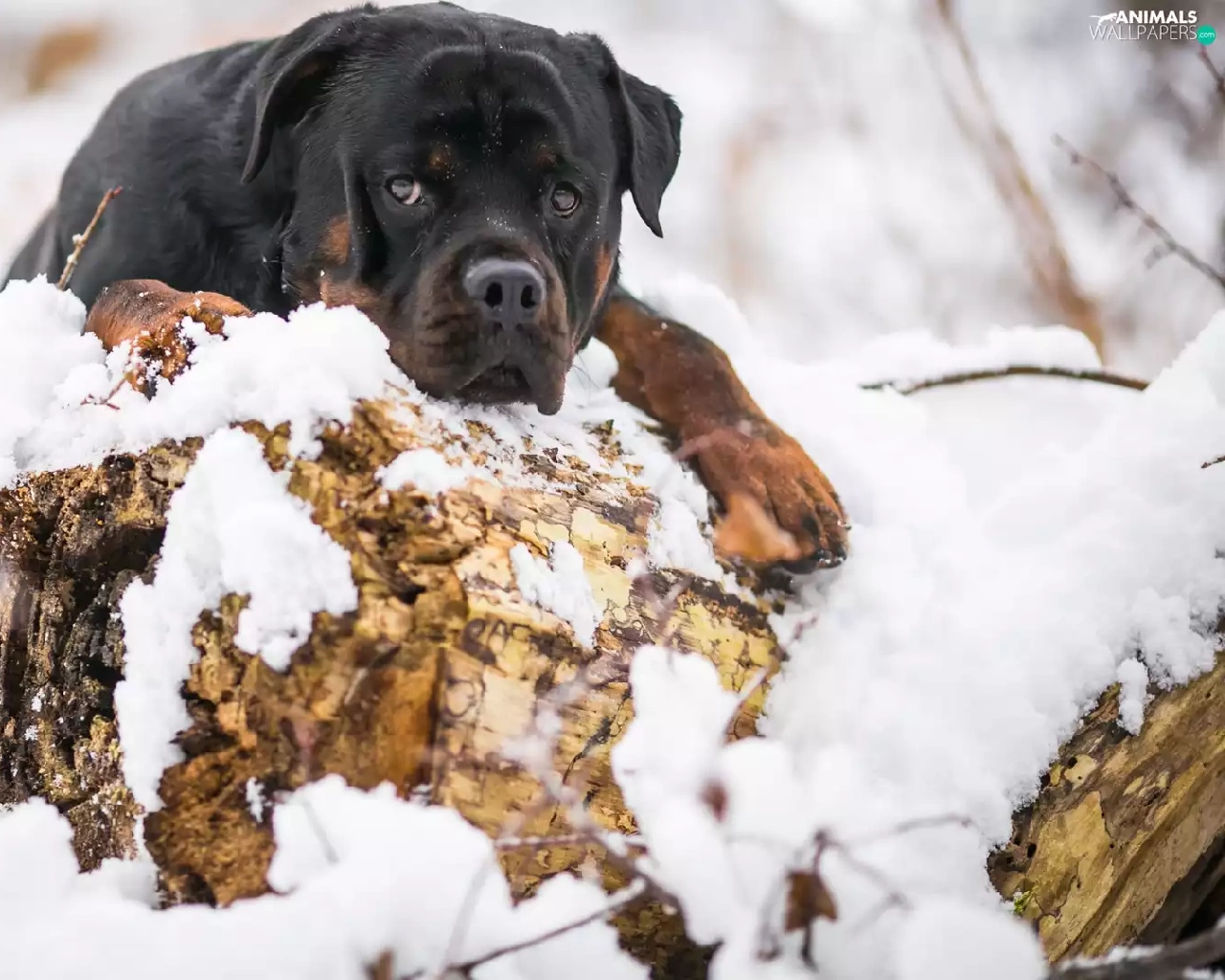 snow, dog, Rottweiler