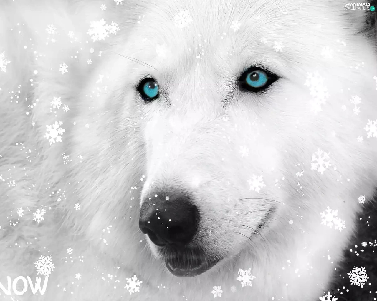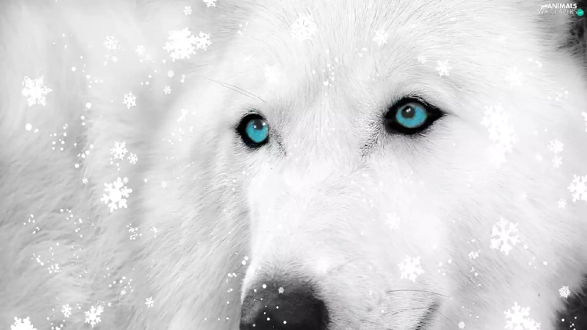 Siberian Husky, flakes, snow