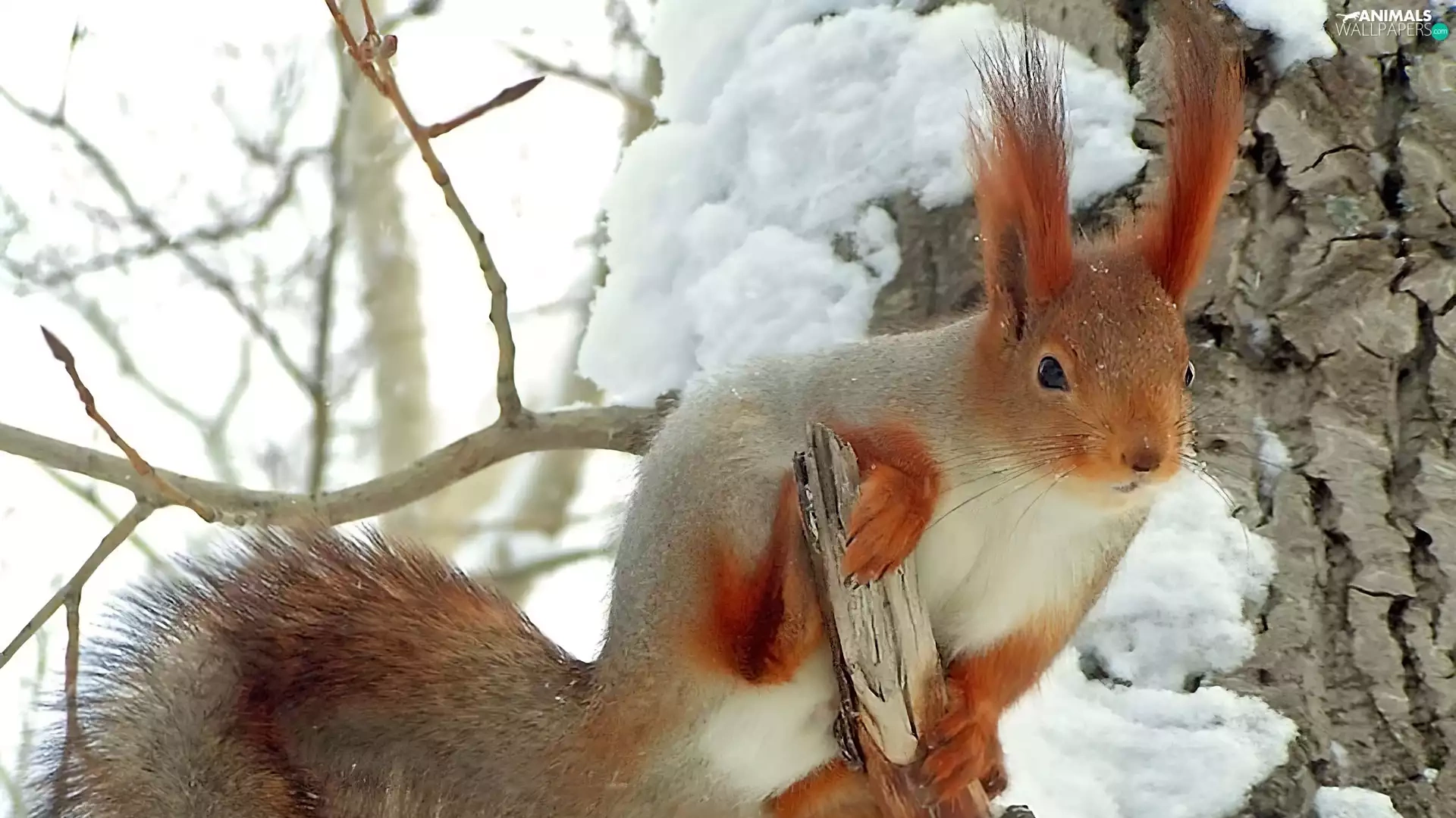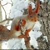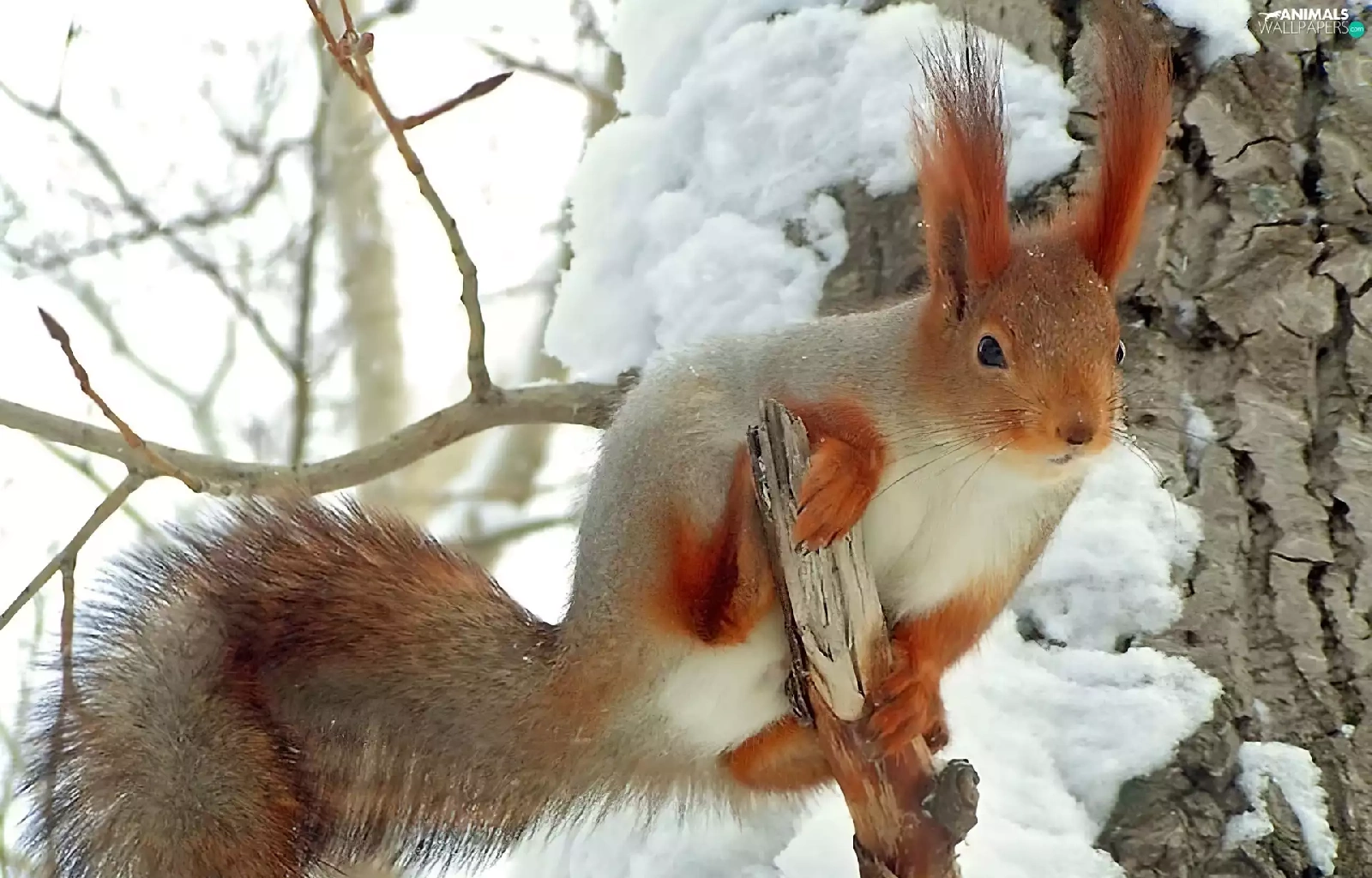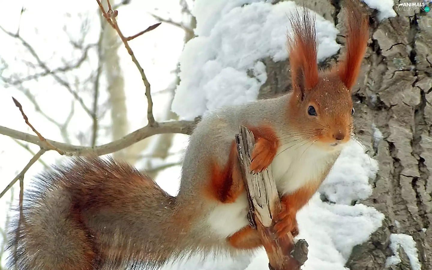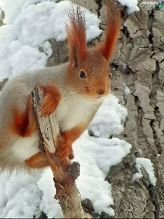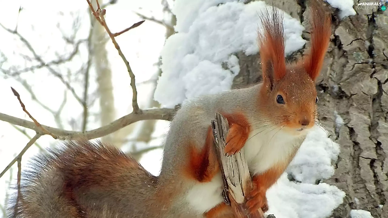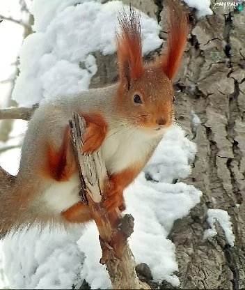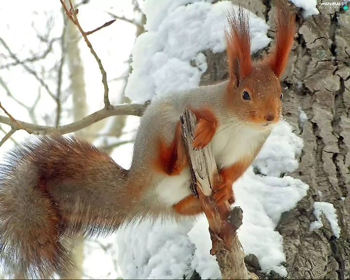 squirrel, snow, trees, viewes, branches