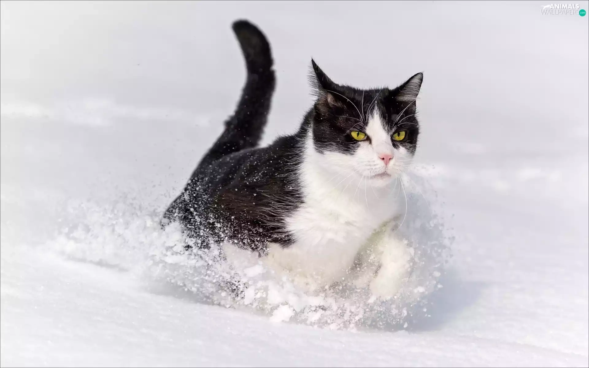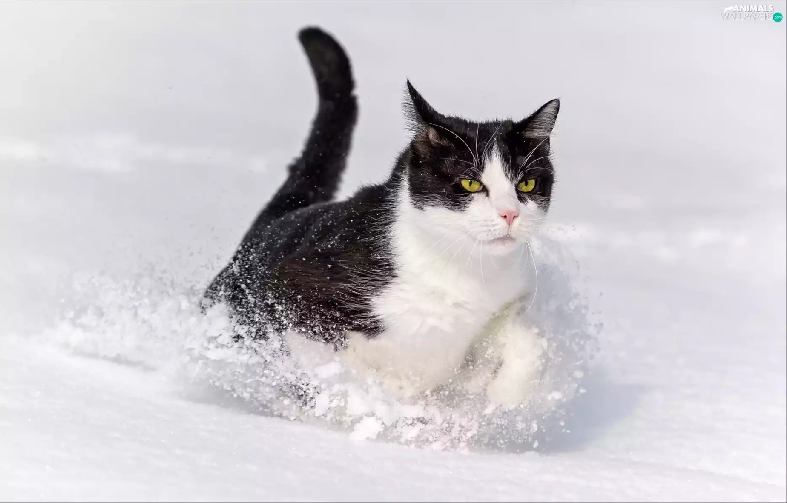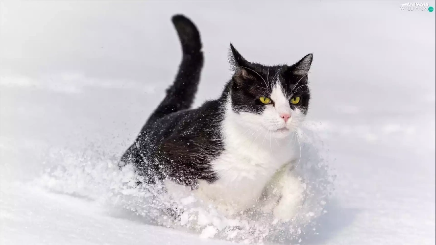winter, snow, White, cat, black