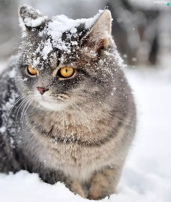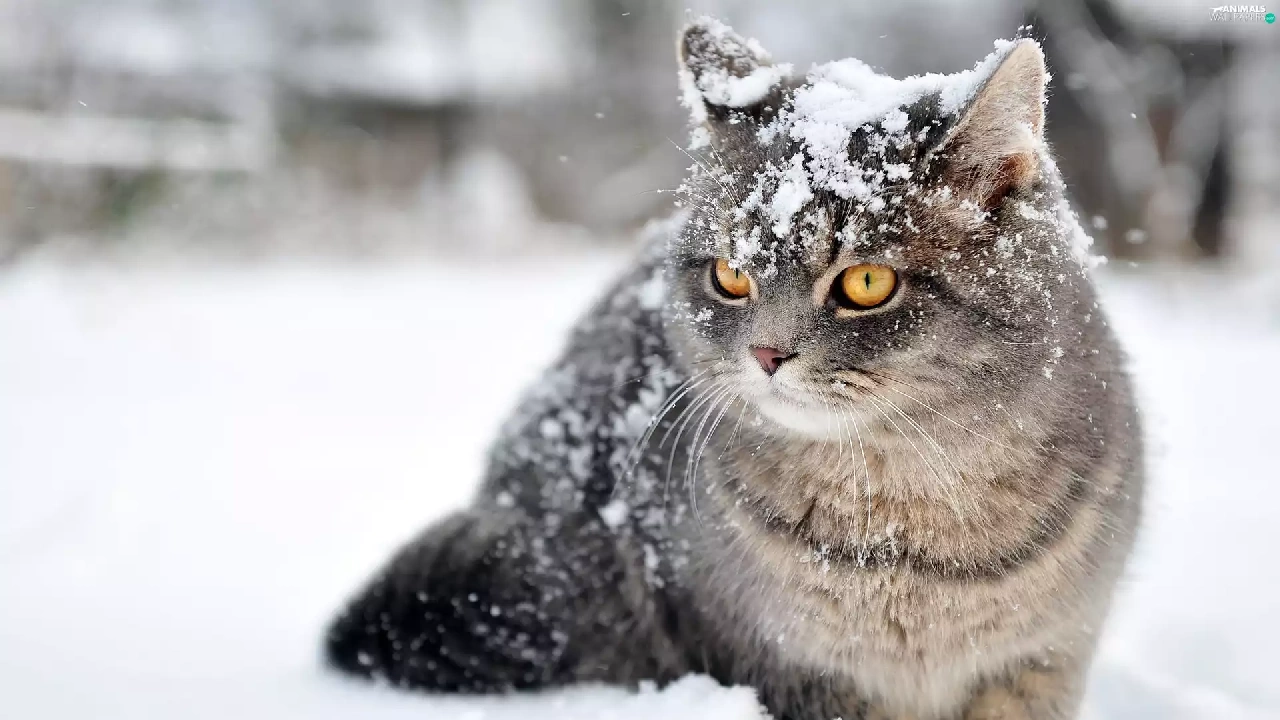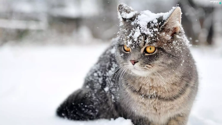 snow, cat, winter