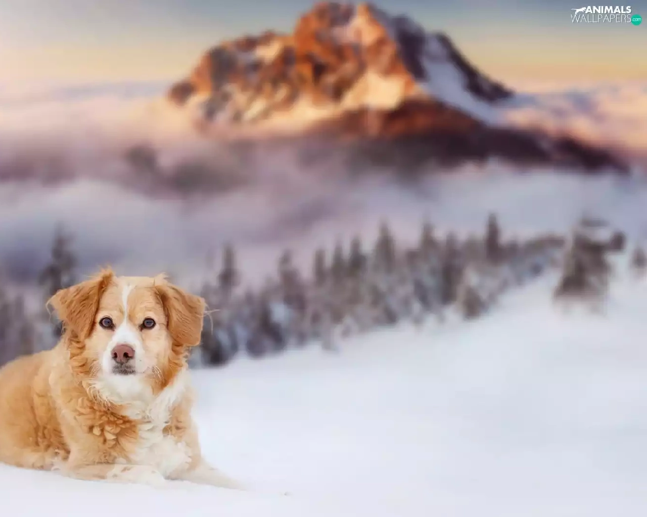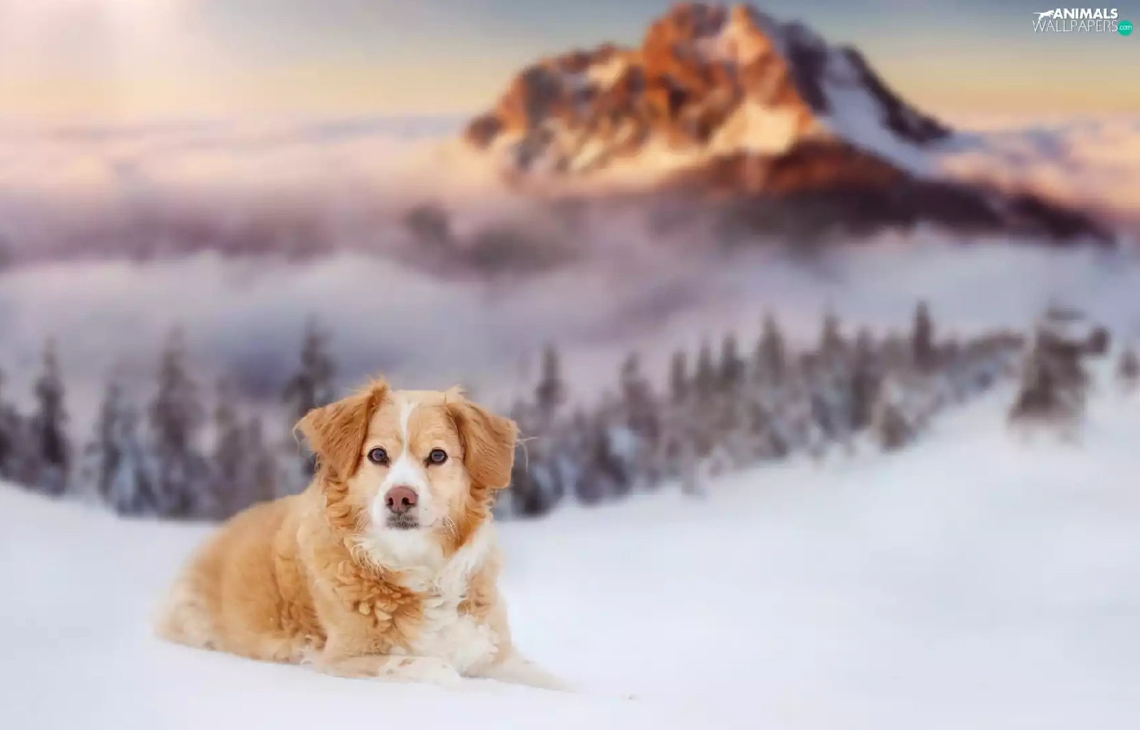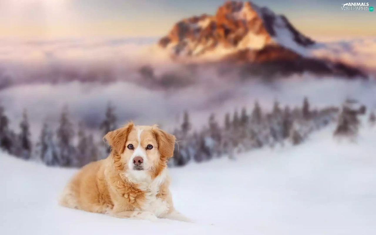 snow, dog, winter