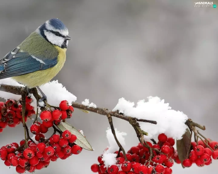 winter, tit, Plant, snow
