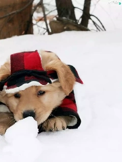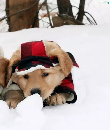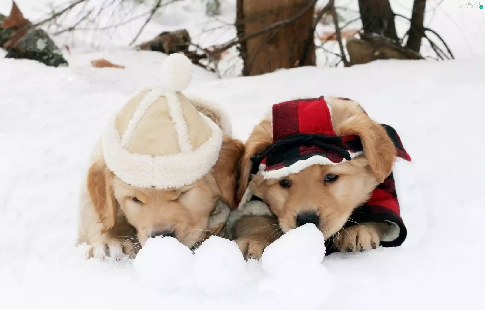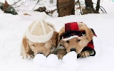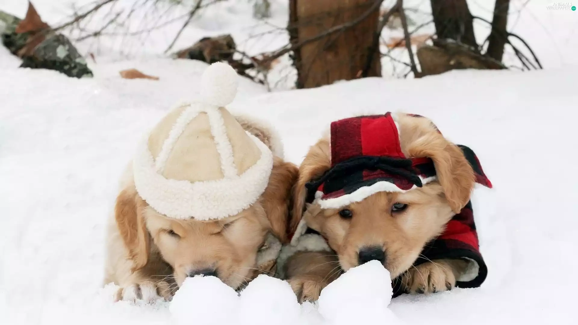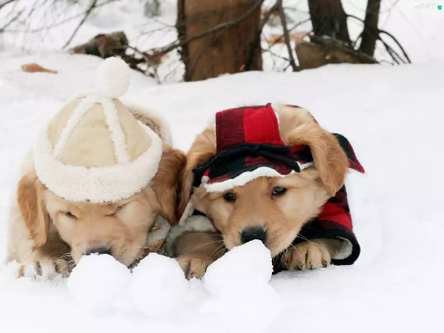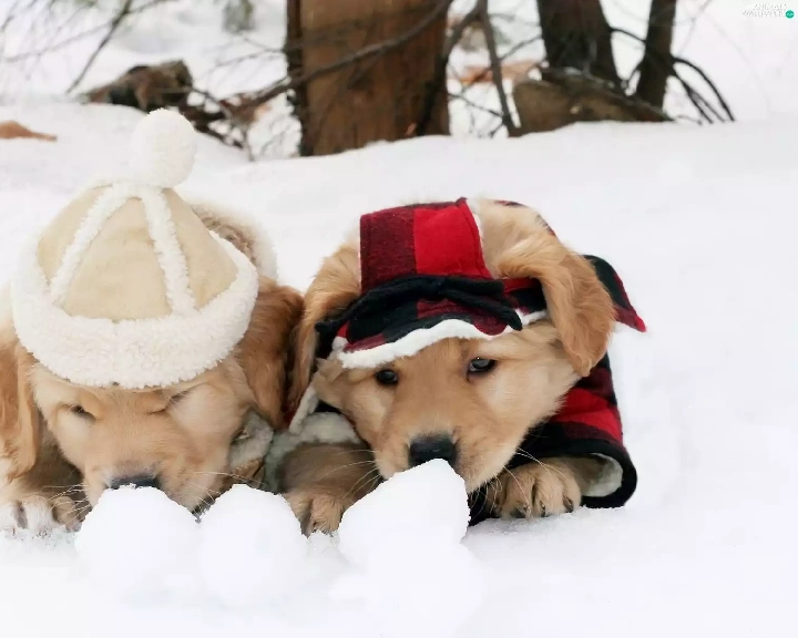 puppies, Golden Retriever, snow, Dogs, winter