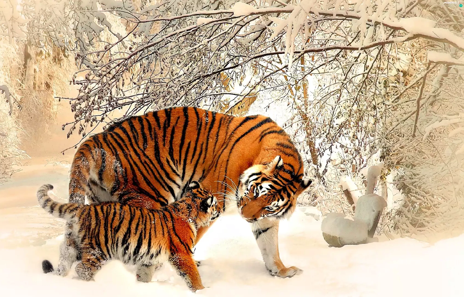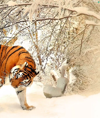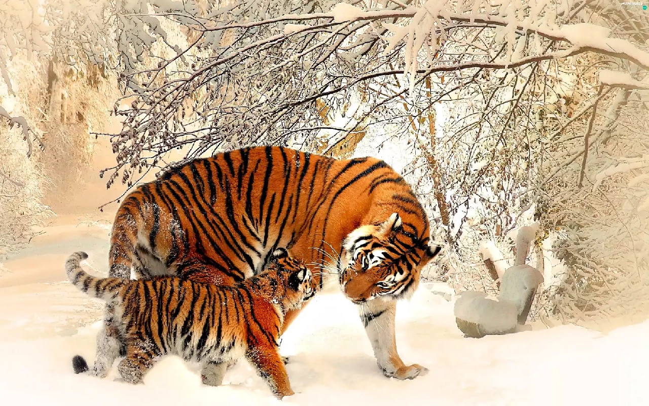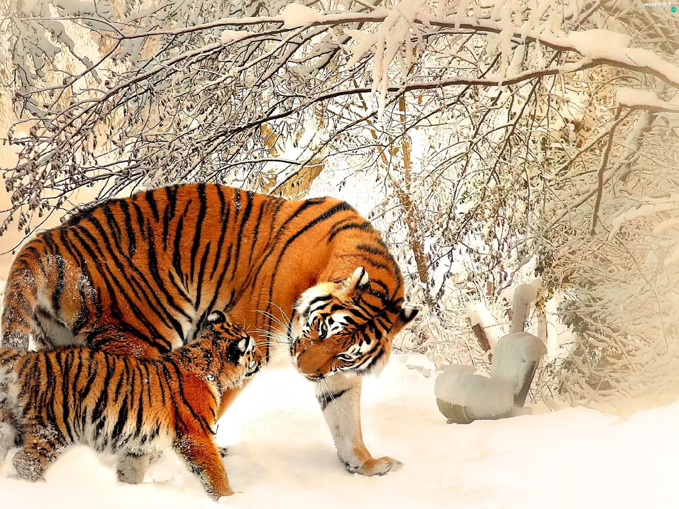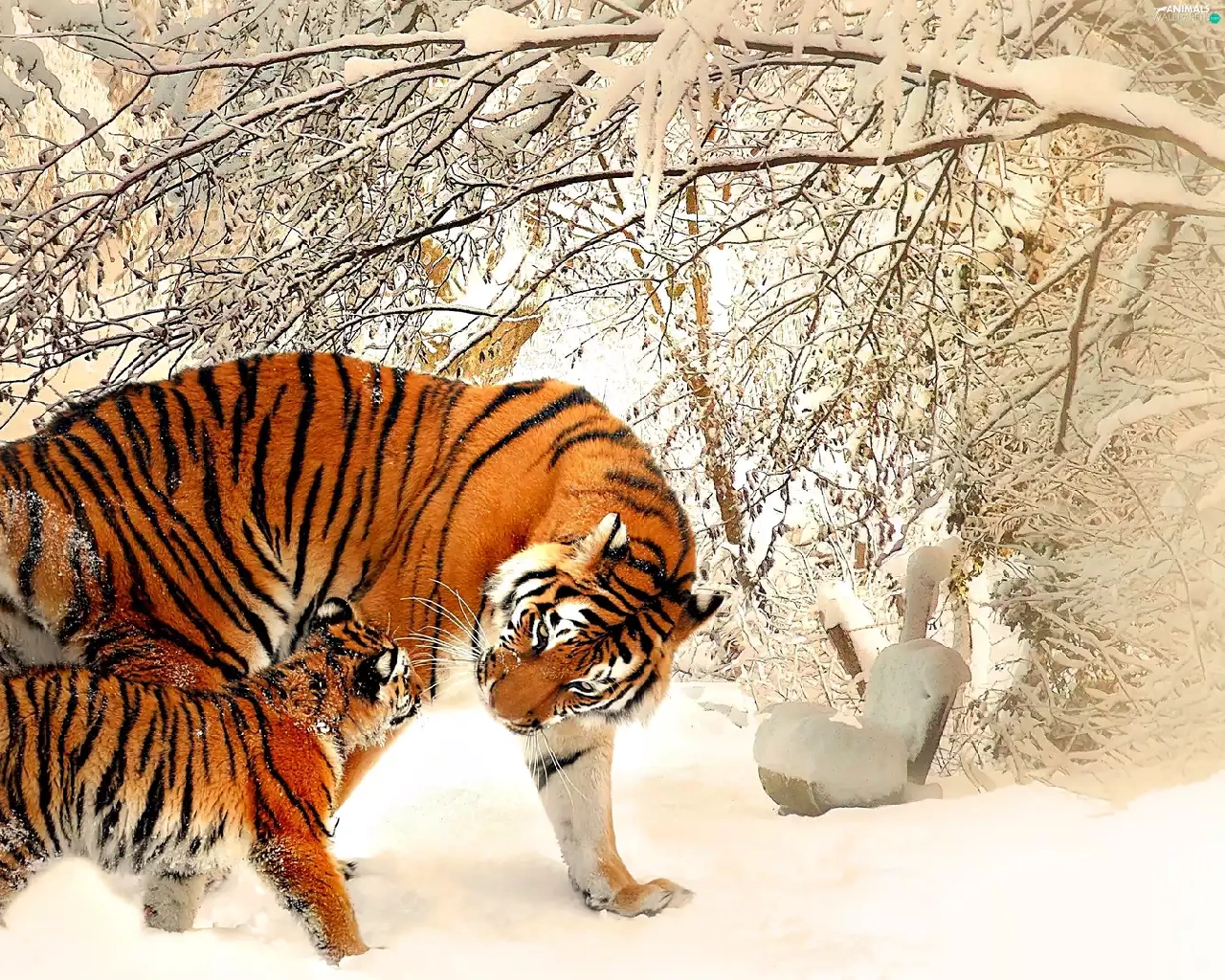 viewes, snow, winter, trees, tigress