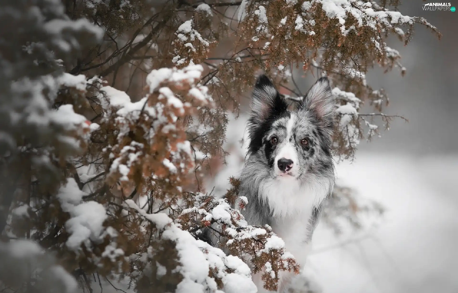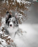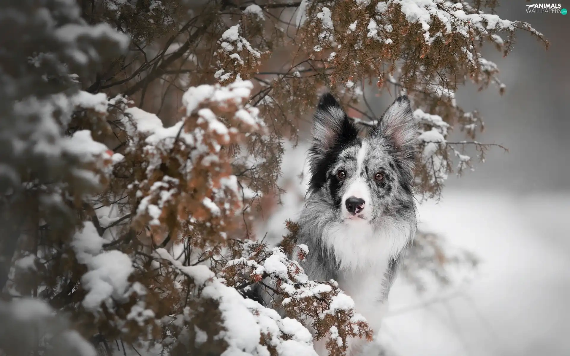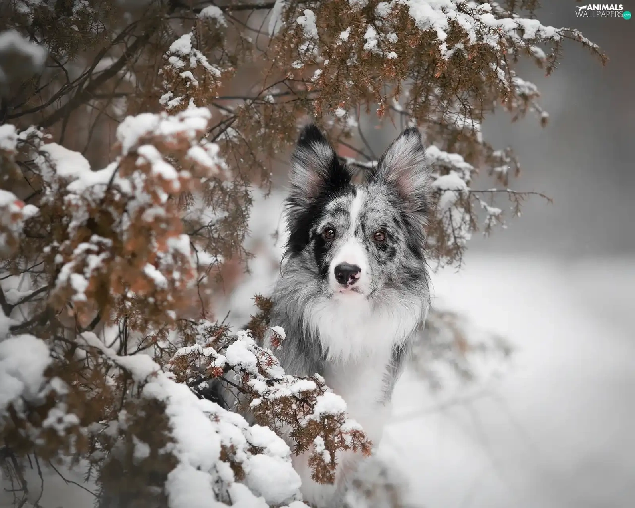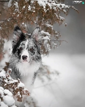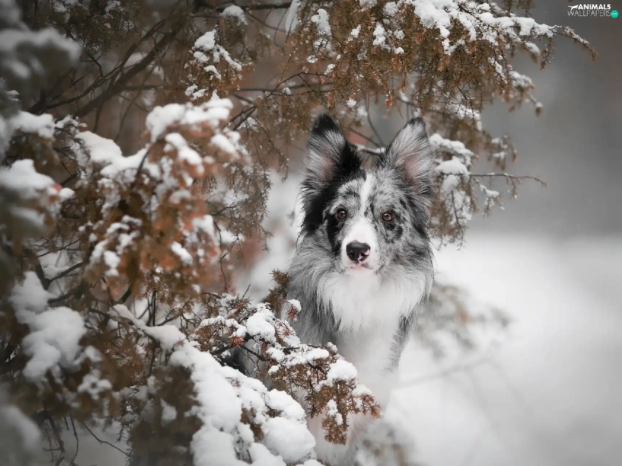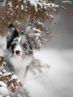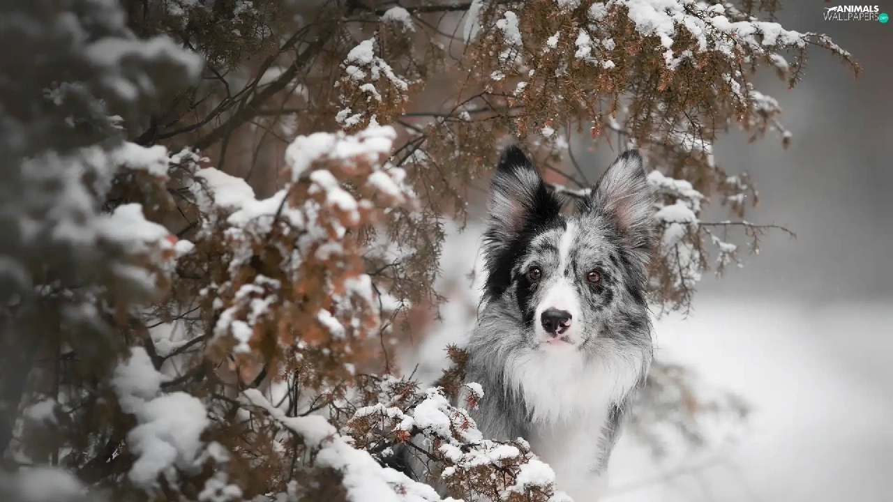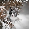 dog, Snowy, Twigs, Border Collie