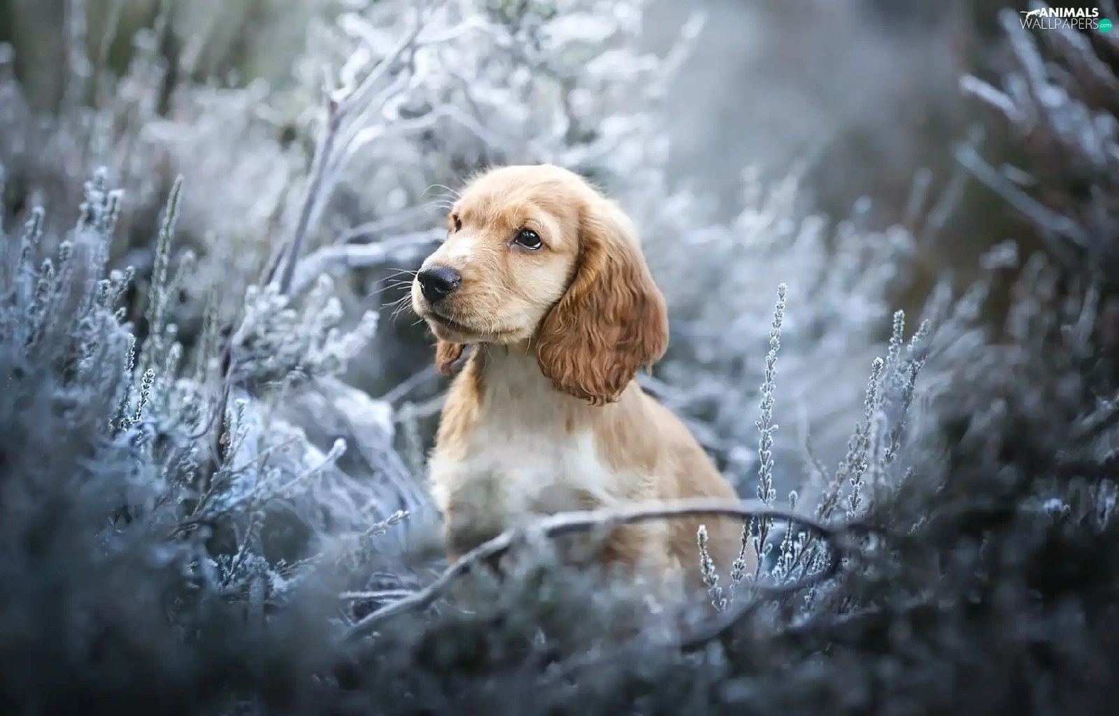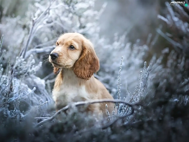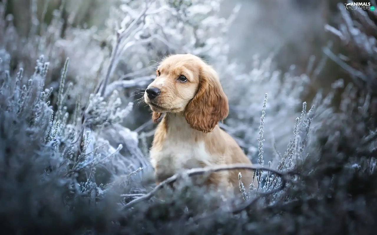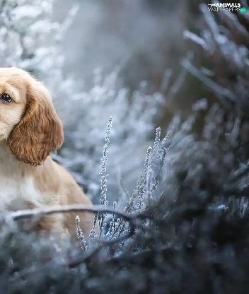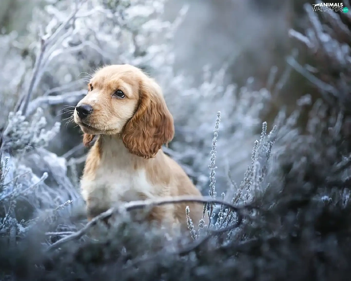 Puppy, dog, Plants, Twigs, muzzle, English Cocker Spaniel