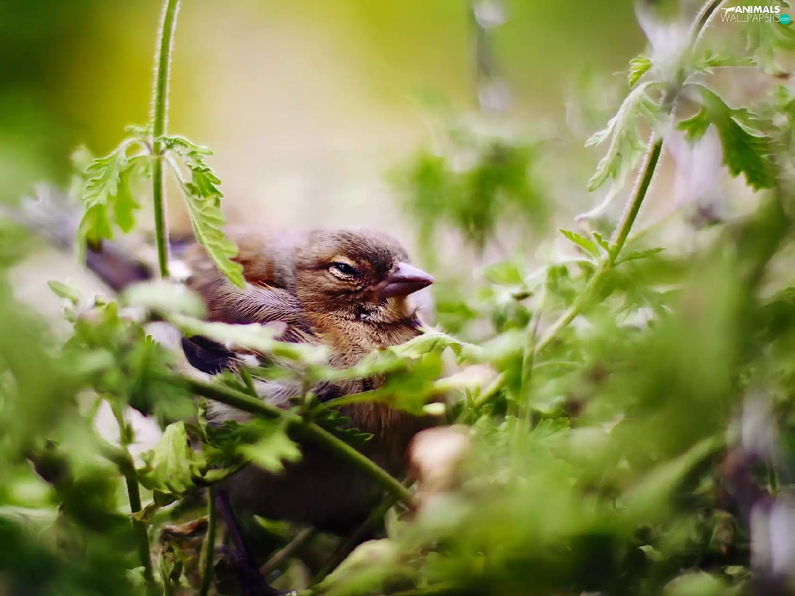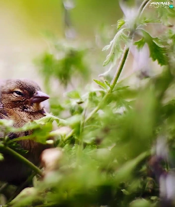 sleepy, Plants, green, Sparrow