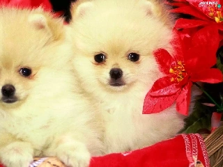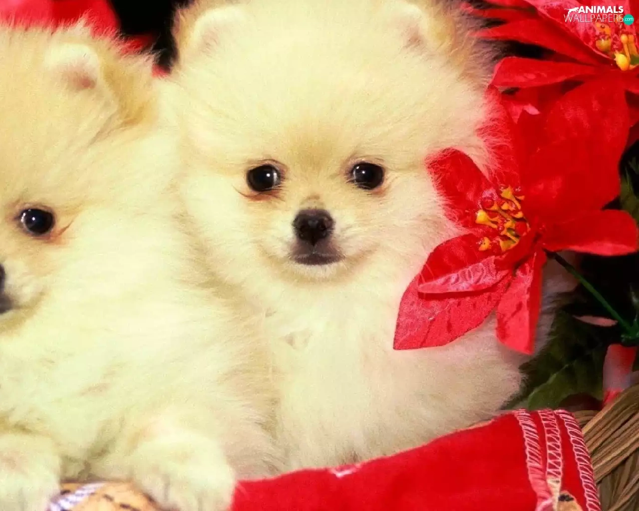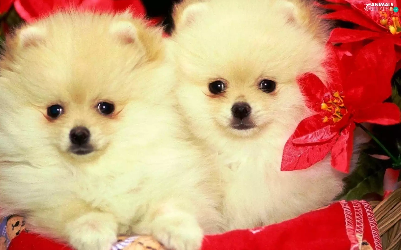 Miniature Spitz, Two cars, Dogs