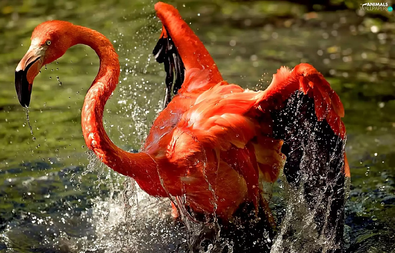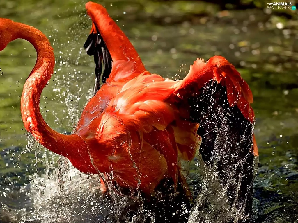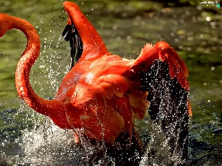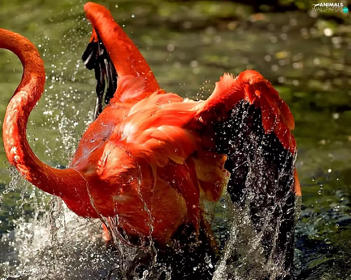 water, Greater Flamingo, Splashing