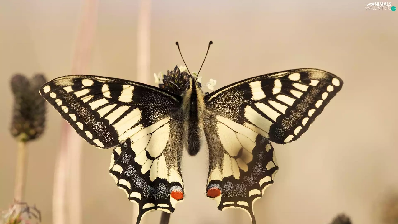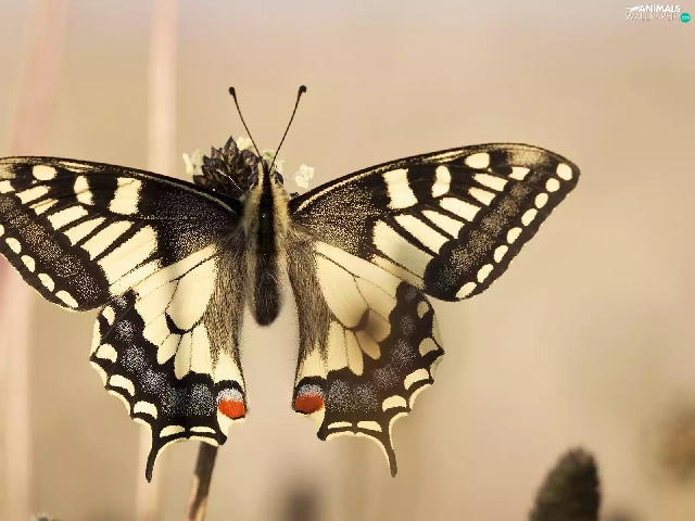 Red, Spots, Black, butterfly, white
