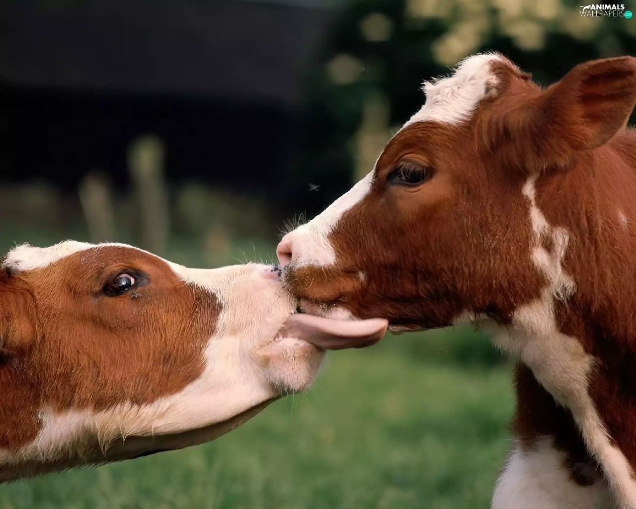Two, Cows, kiss, spotted