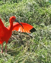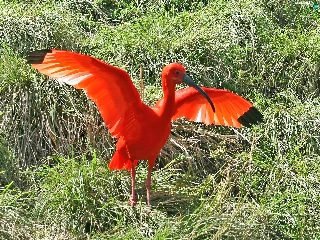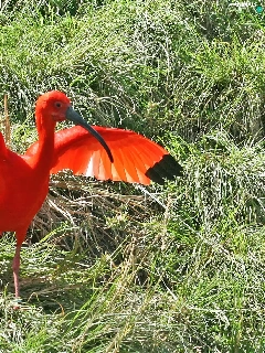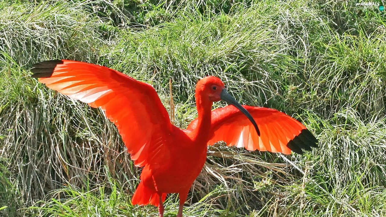 Ibis, wings, grass, spread