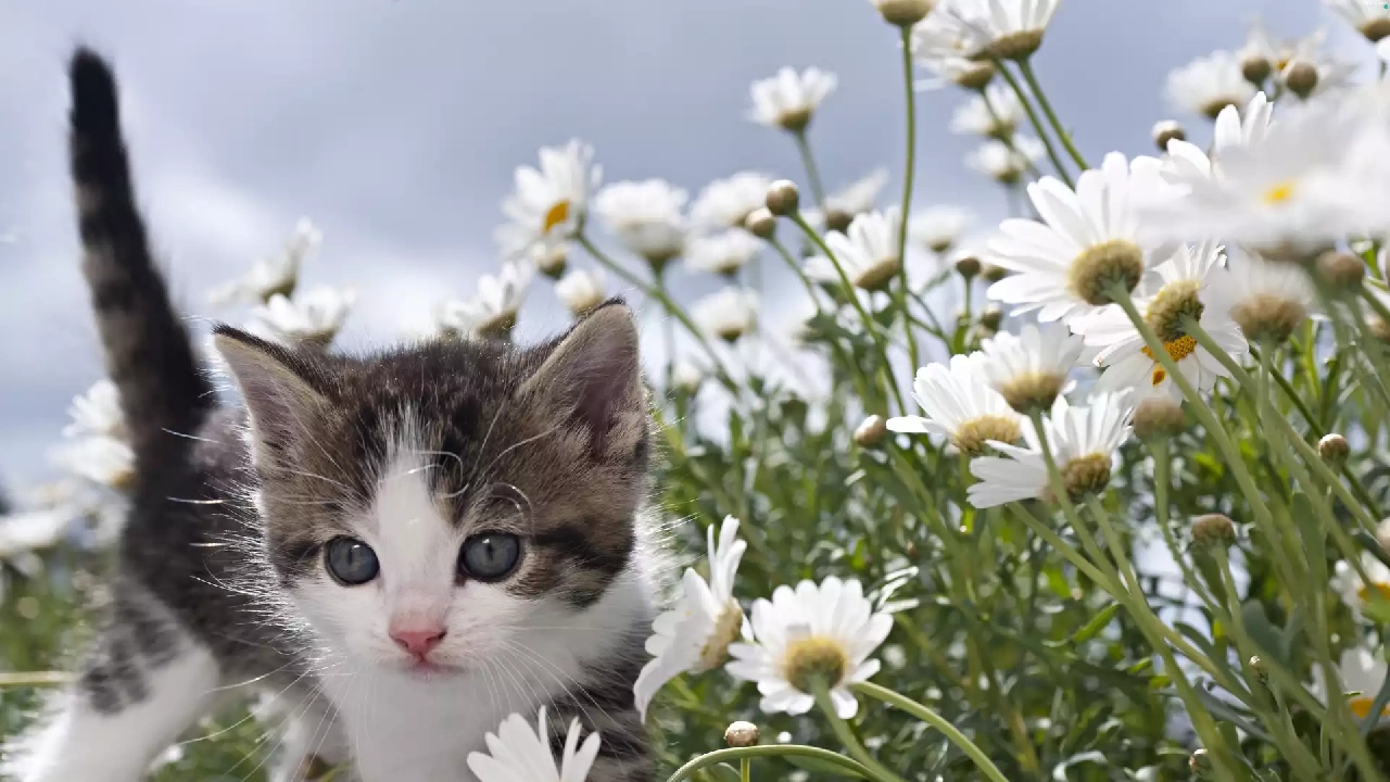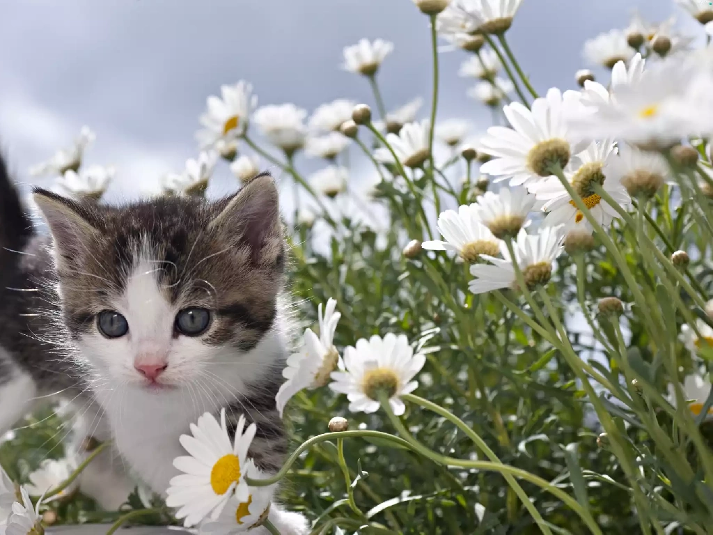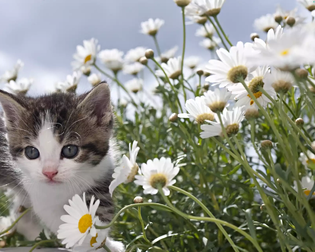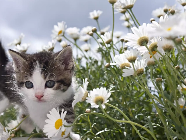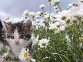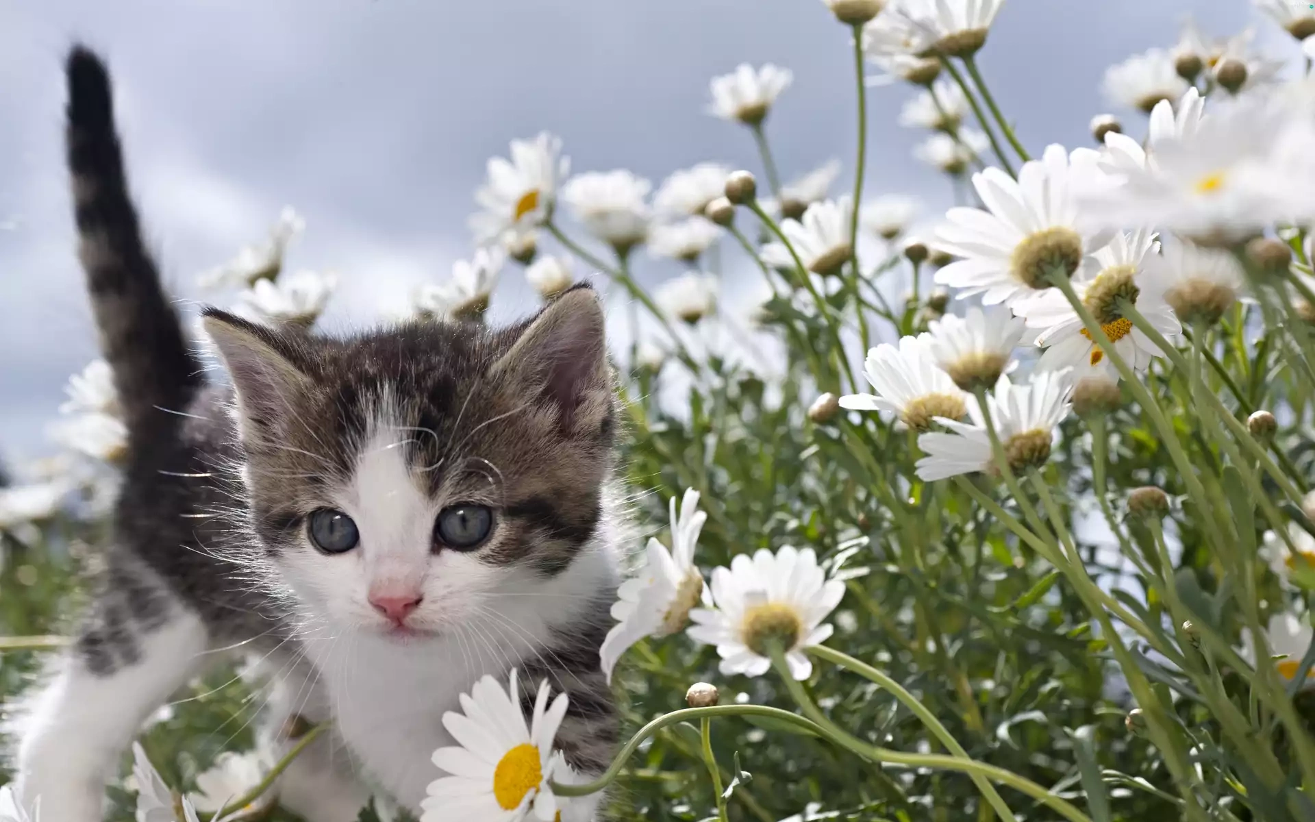 daisy, Spring, kitten, Meadow, small