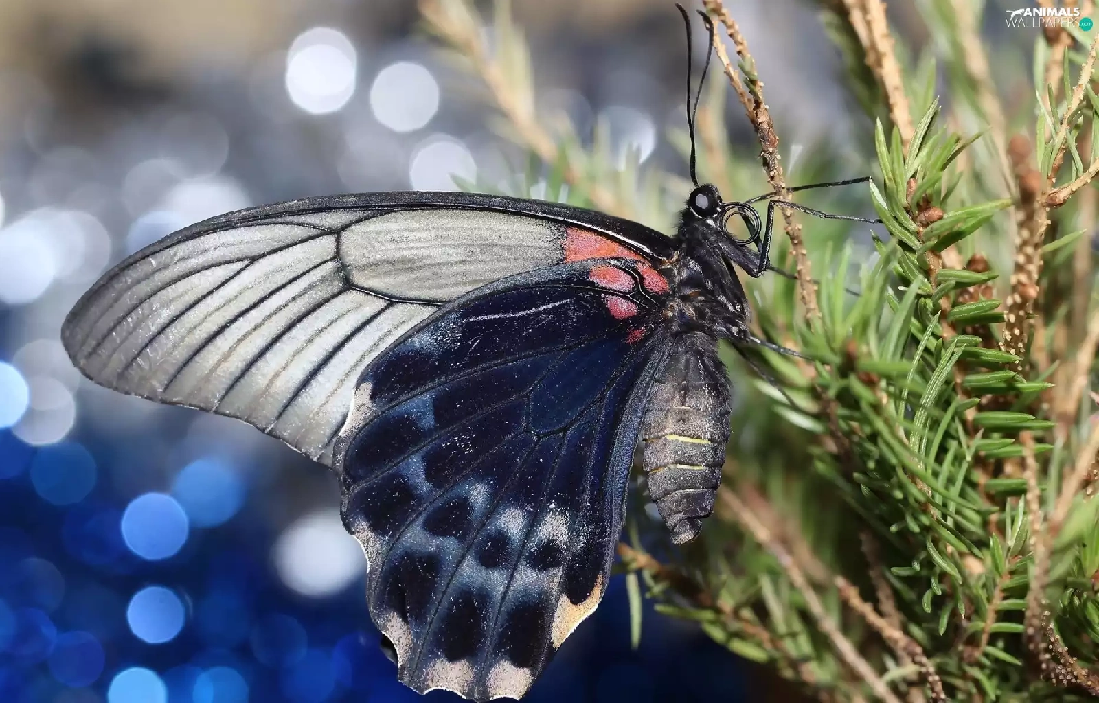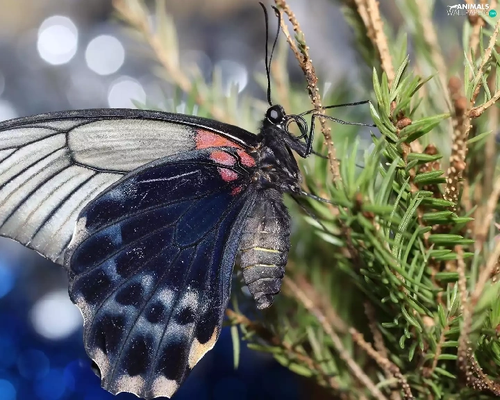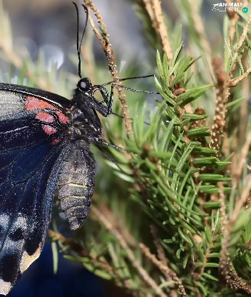 spruce, butterfly, Twigs