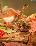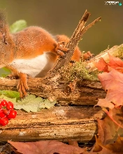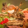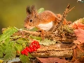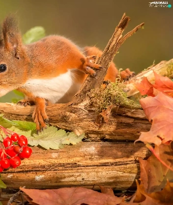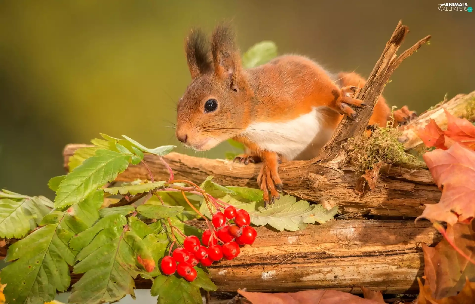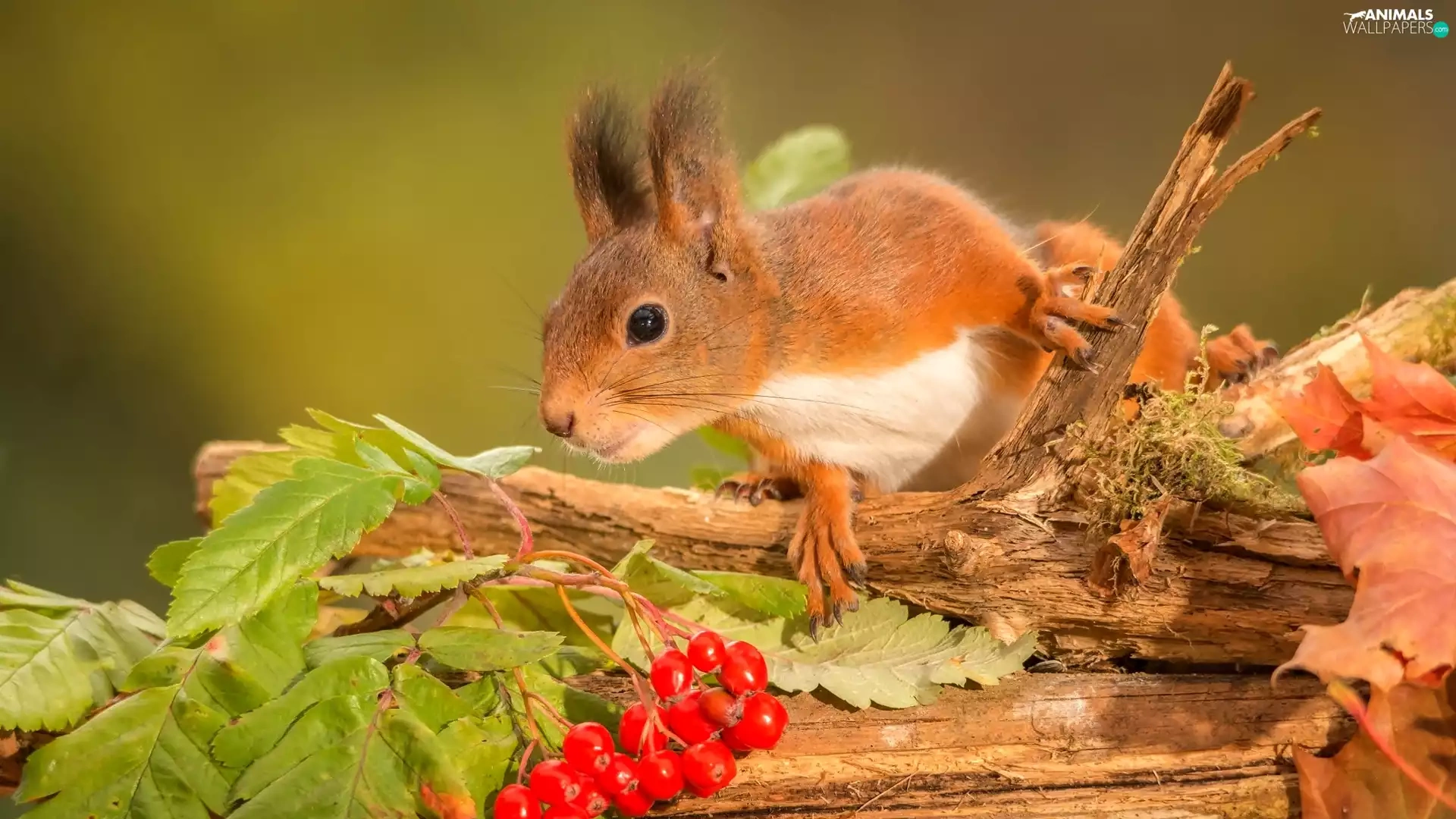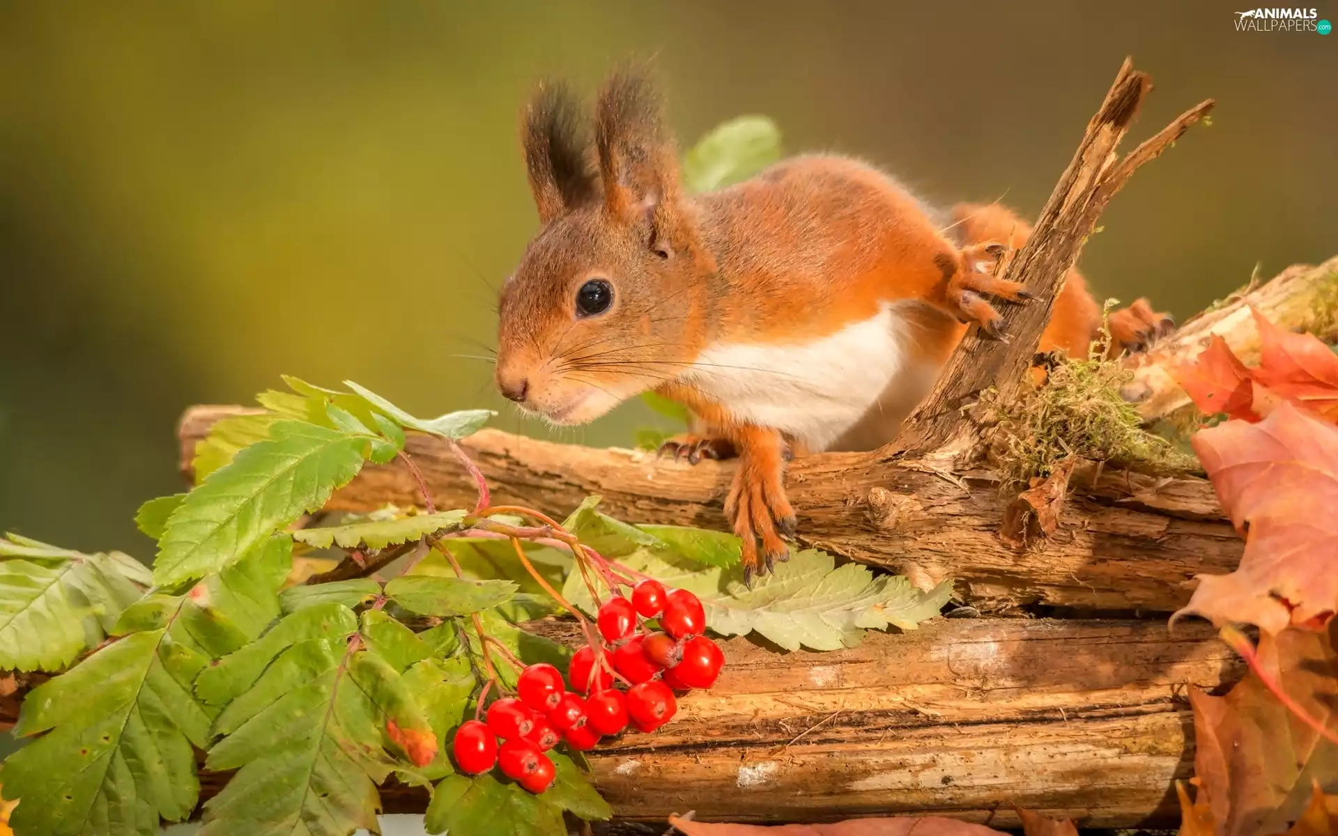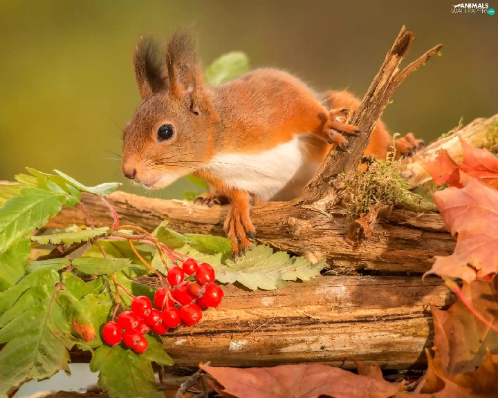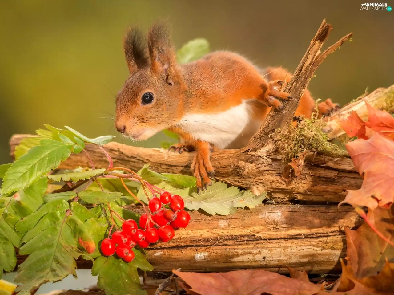 Leaf, Mountain Ash, squirrel, branch, autumn