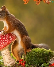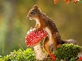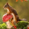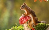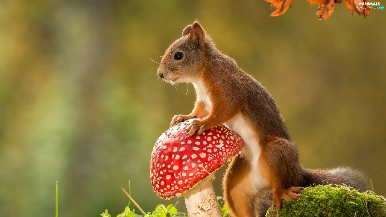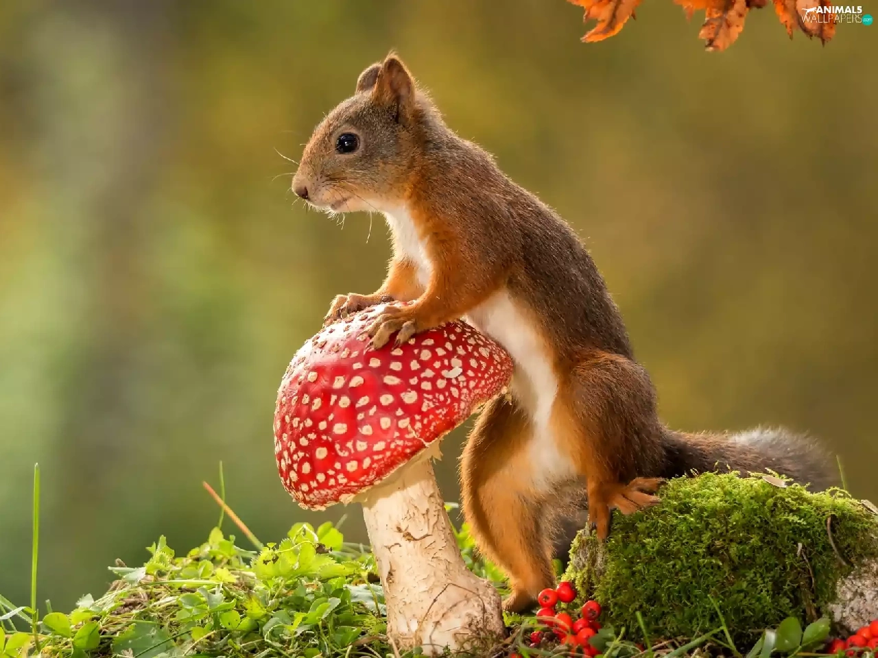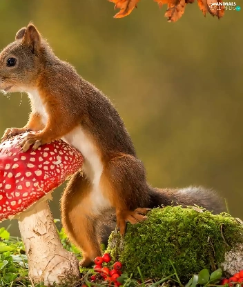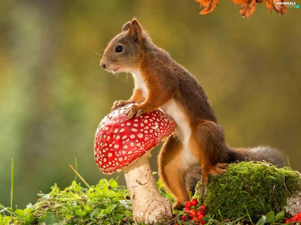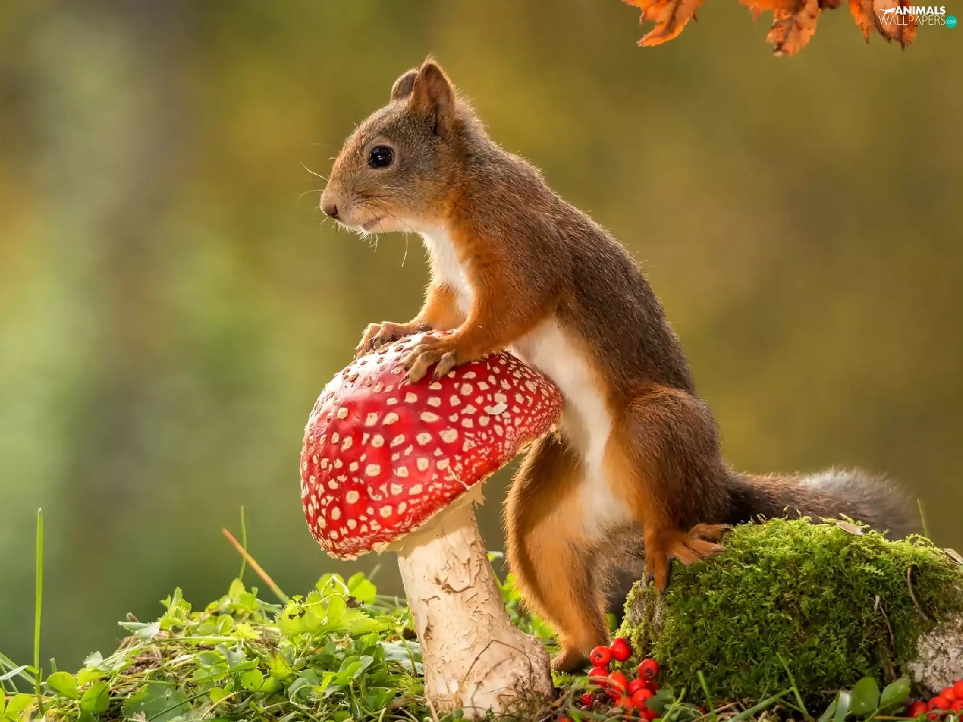 Moss, Mountain Ash, squirrel, Mushrooms, autumn