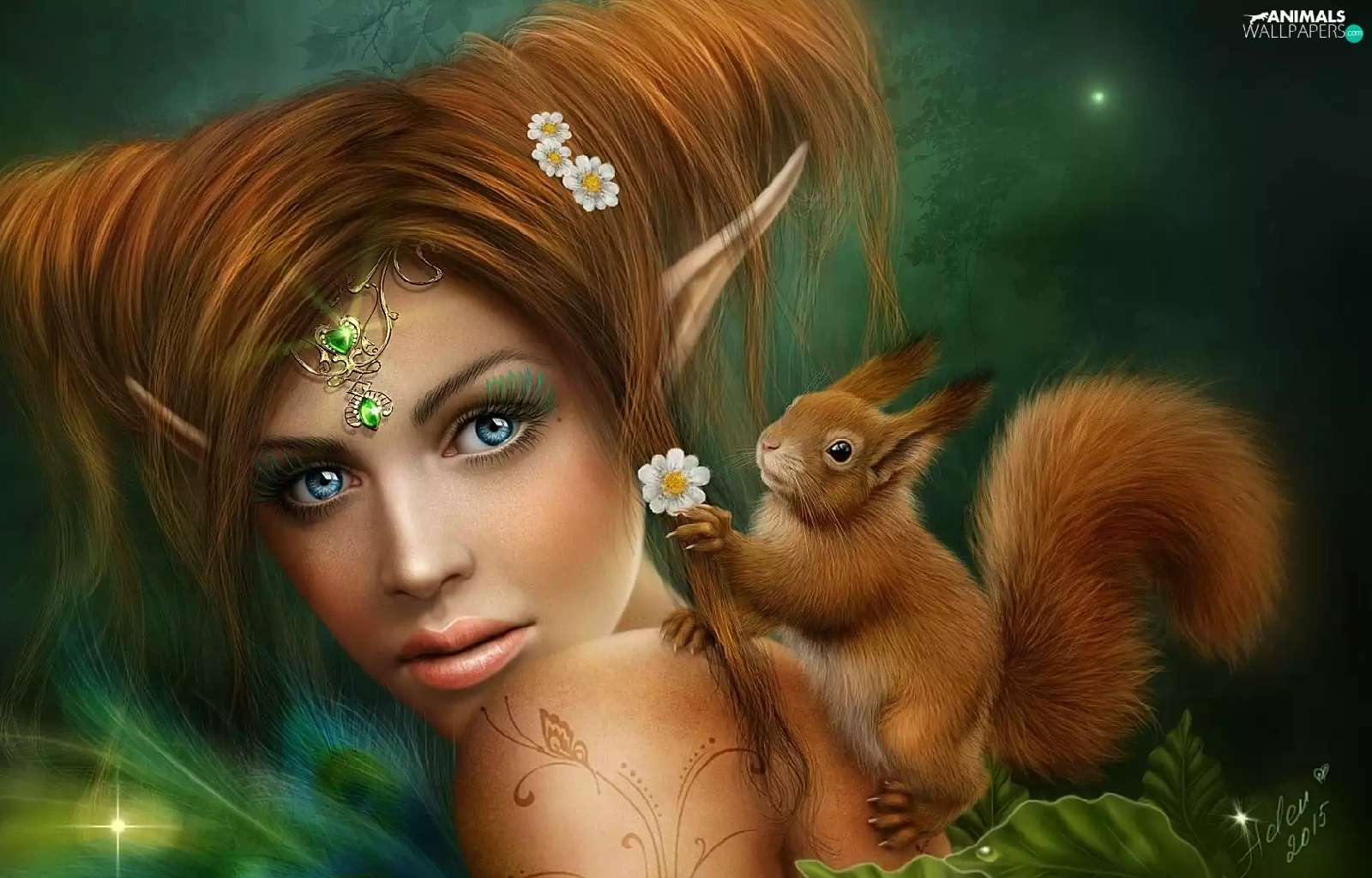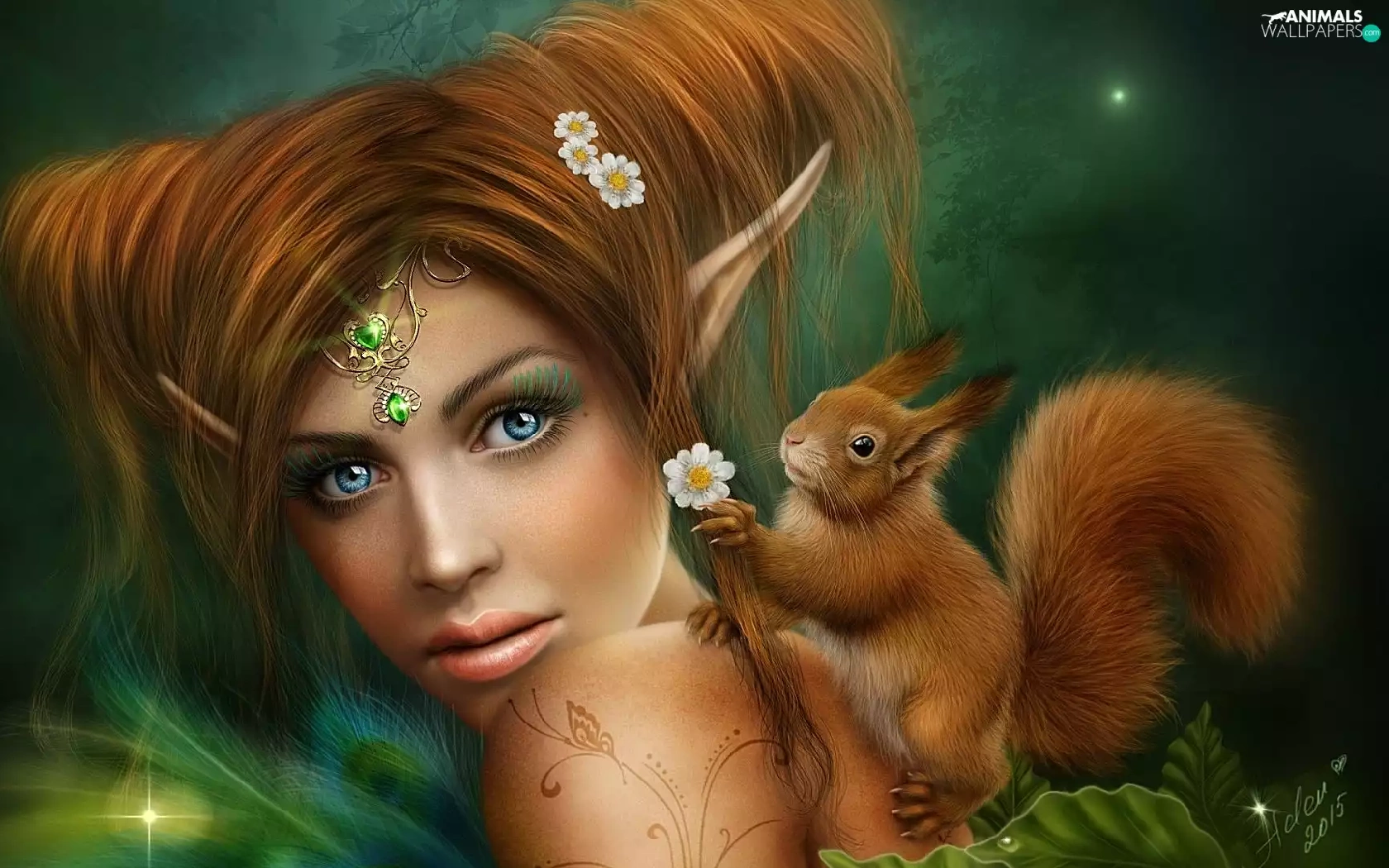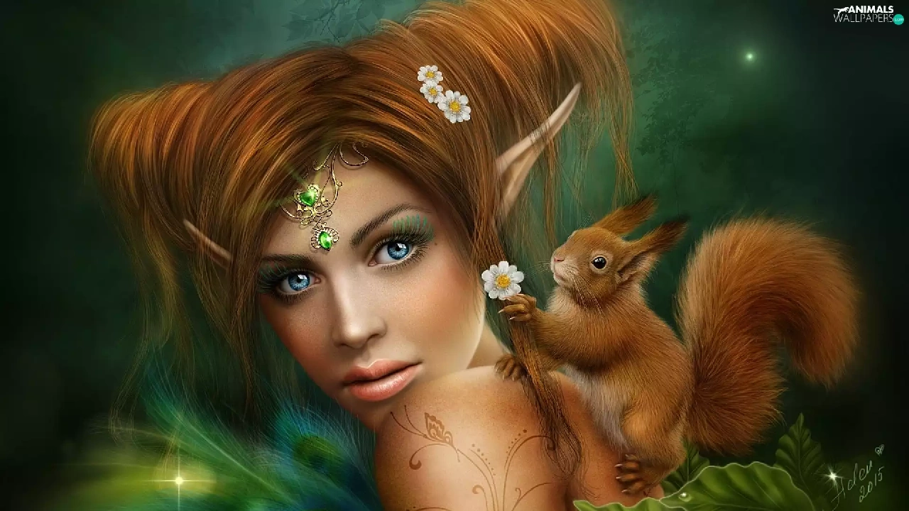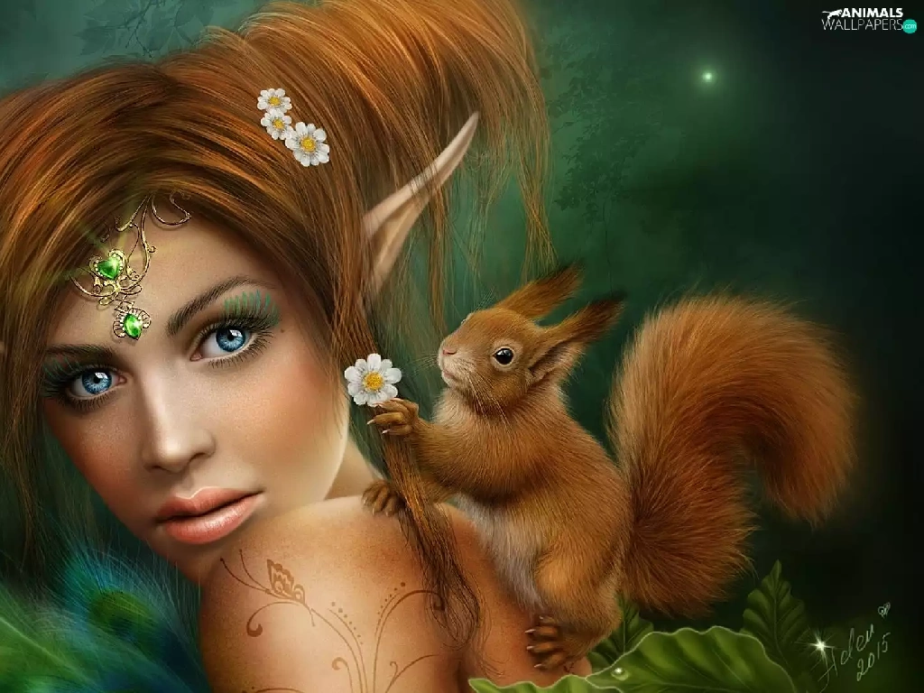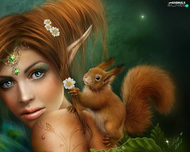 squirrel, girl, elf
