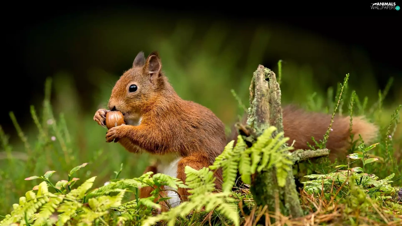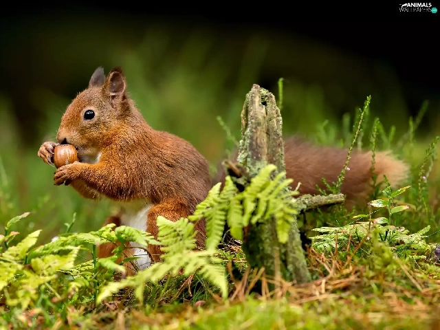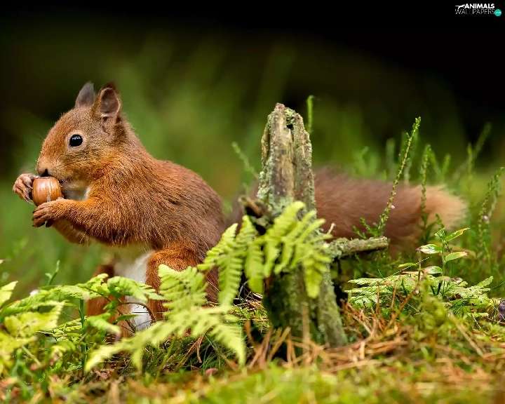 Ginger, nut, grass, squirrel