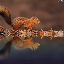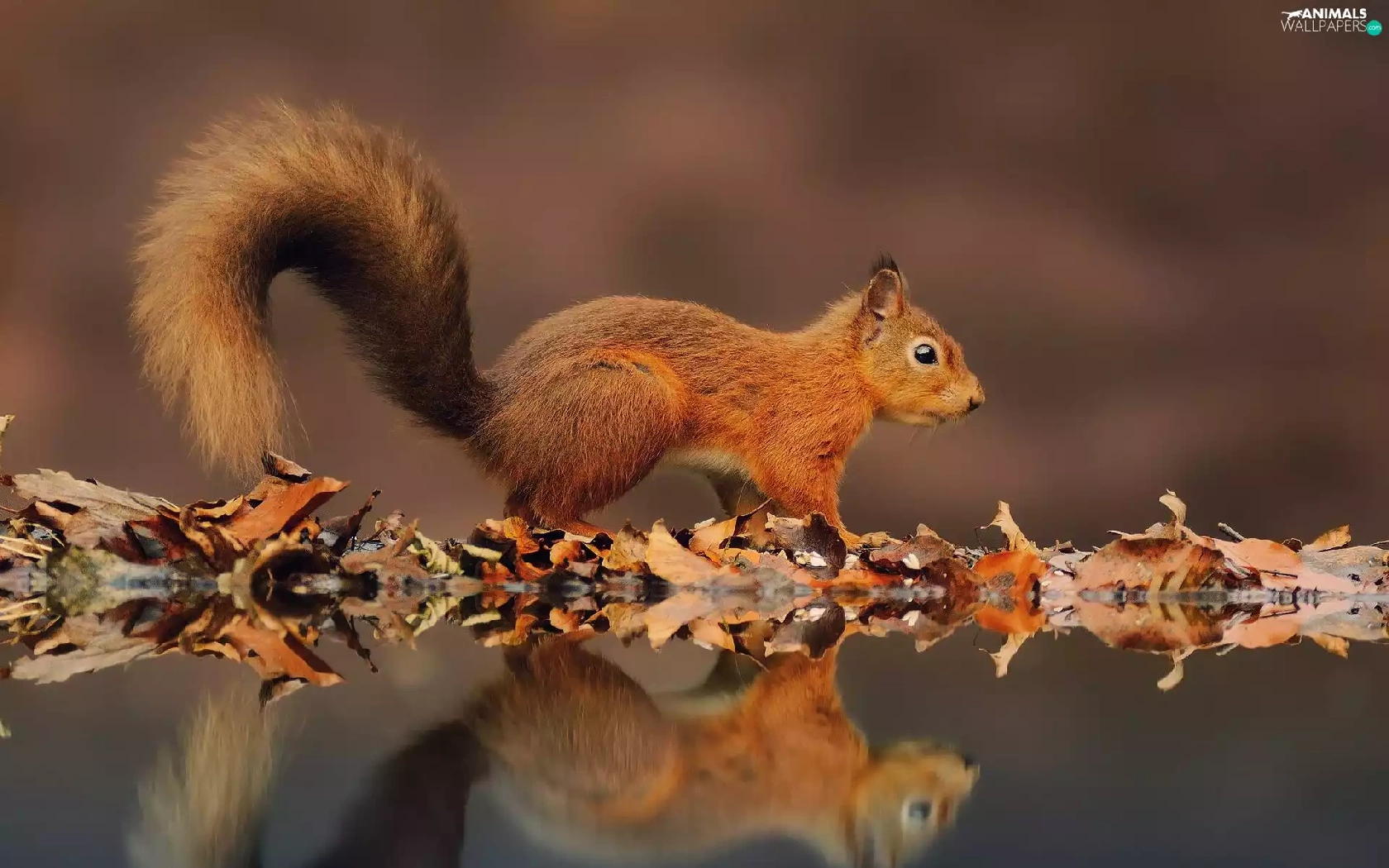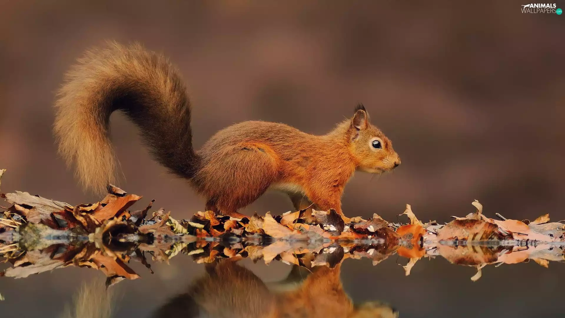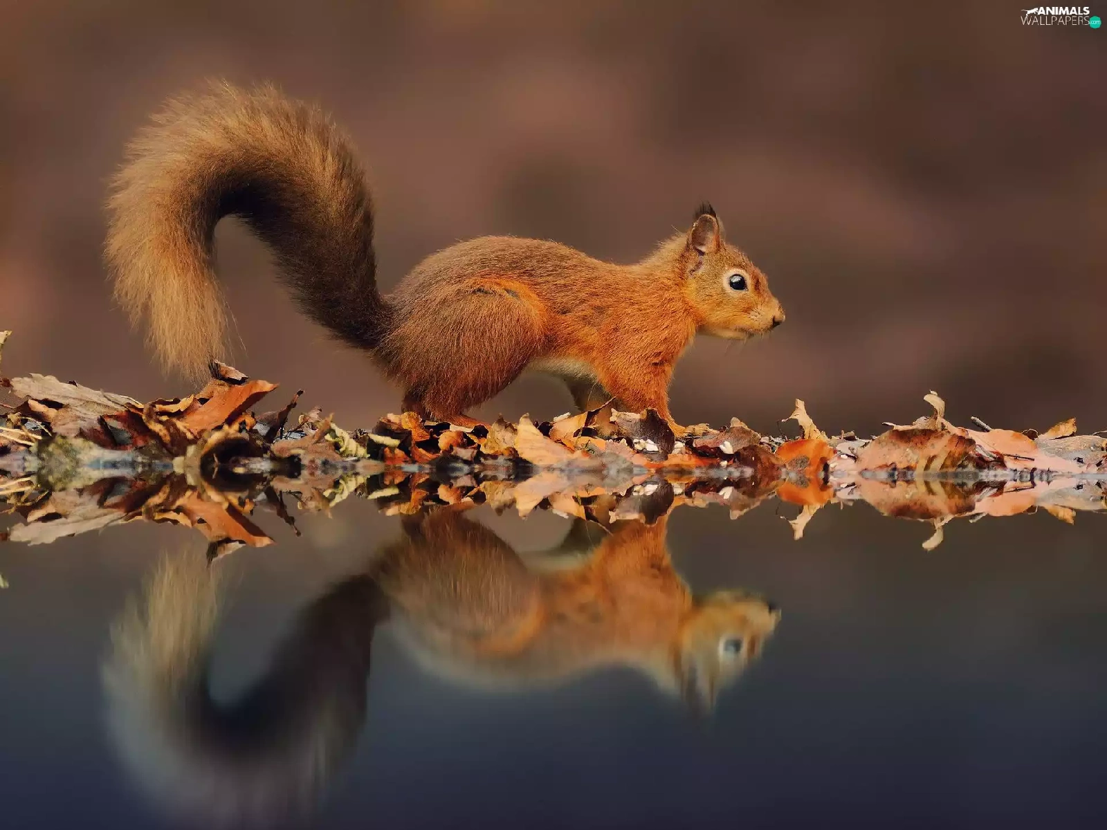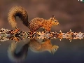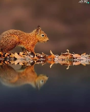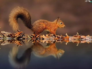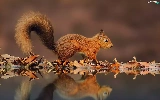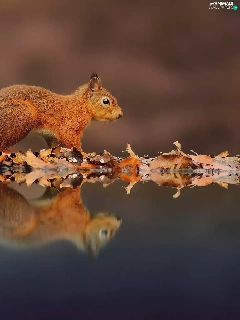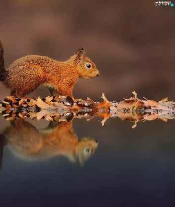 Ginger, Leaf, reflection, squirrel