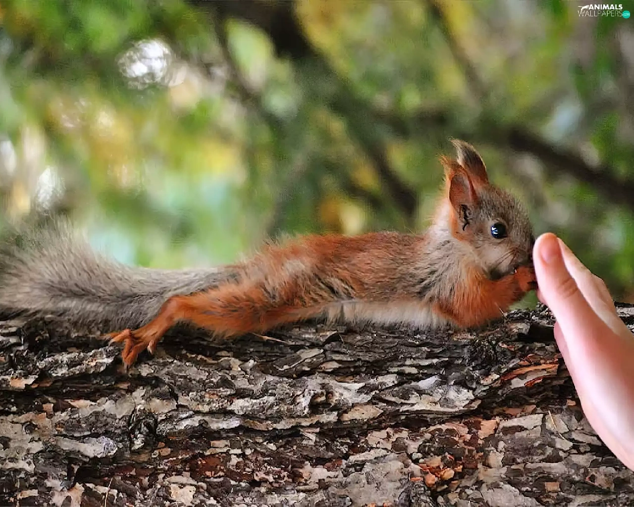 squirrel, hand