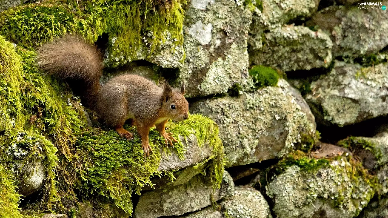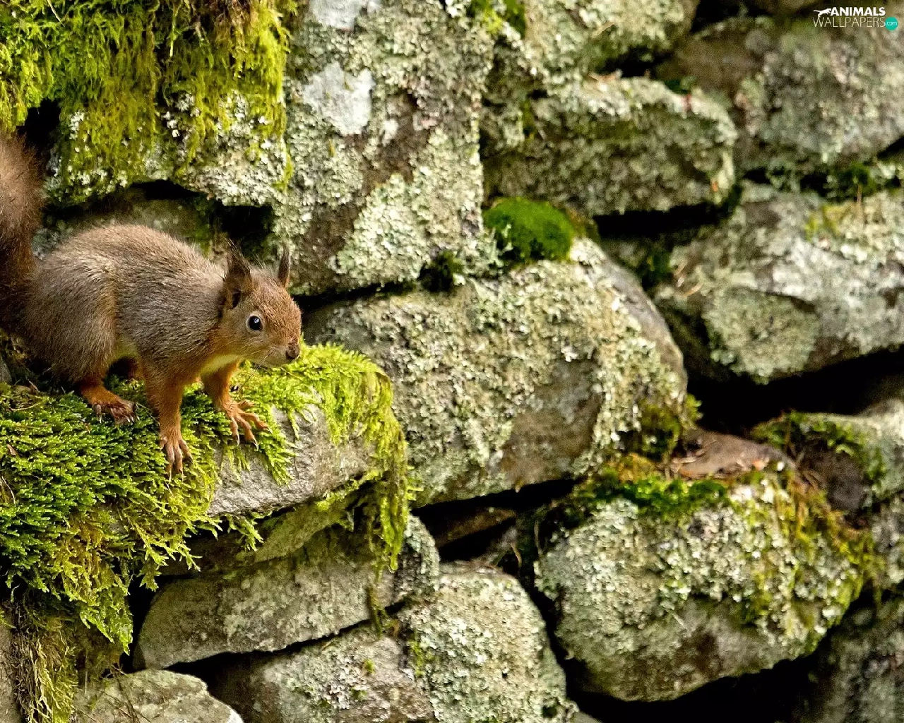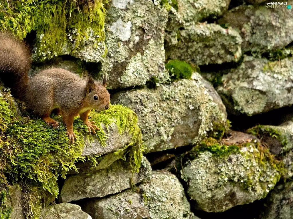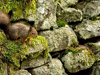squirrel, Stones, Moss