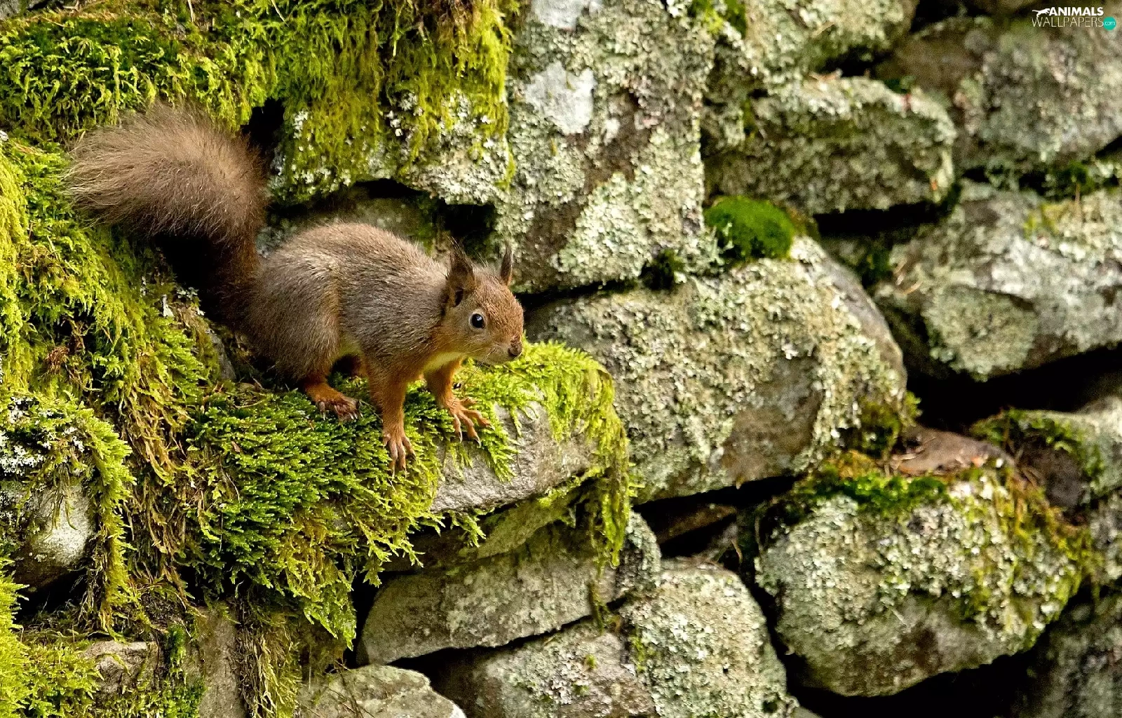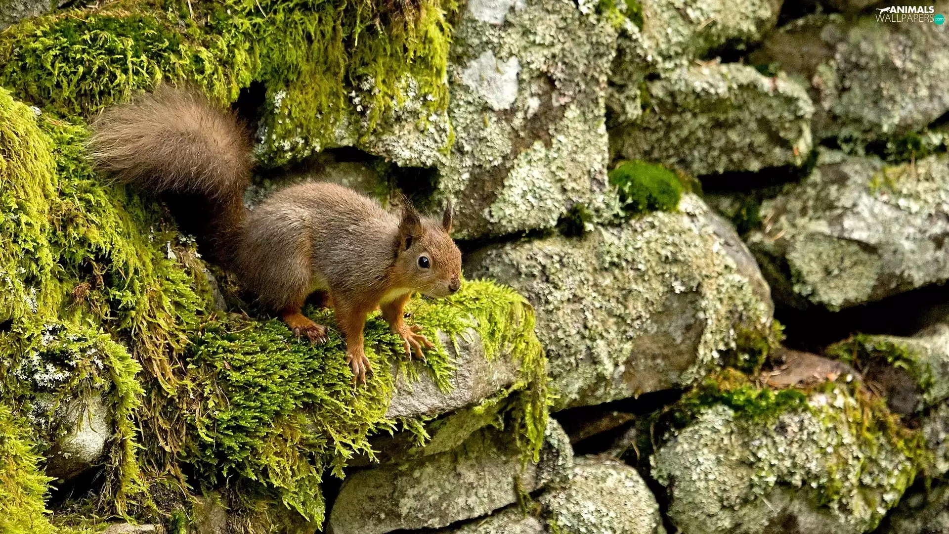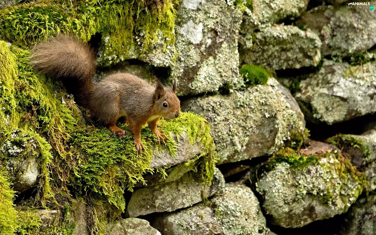 squirrel, Stones, Moss