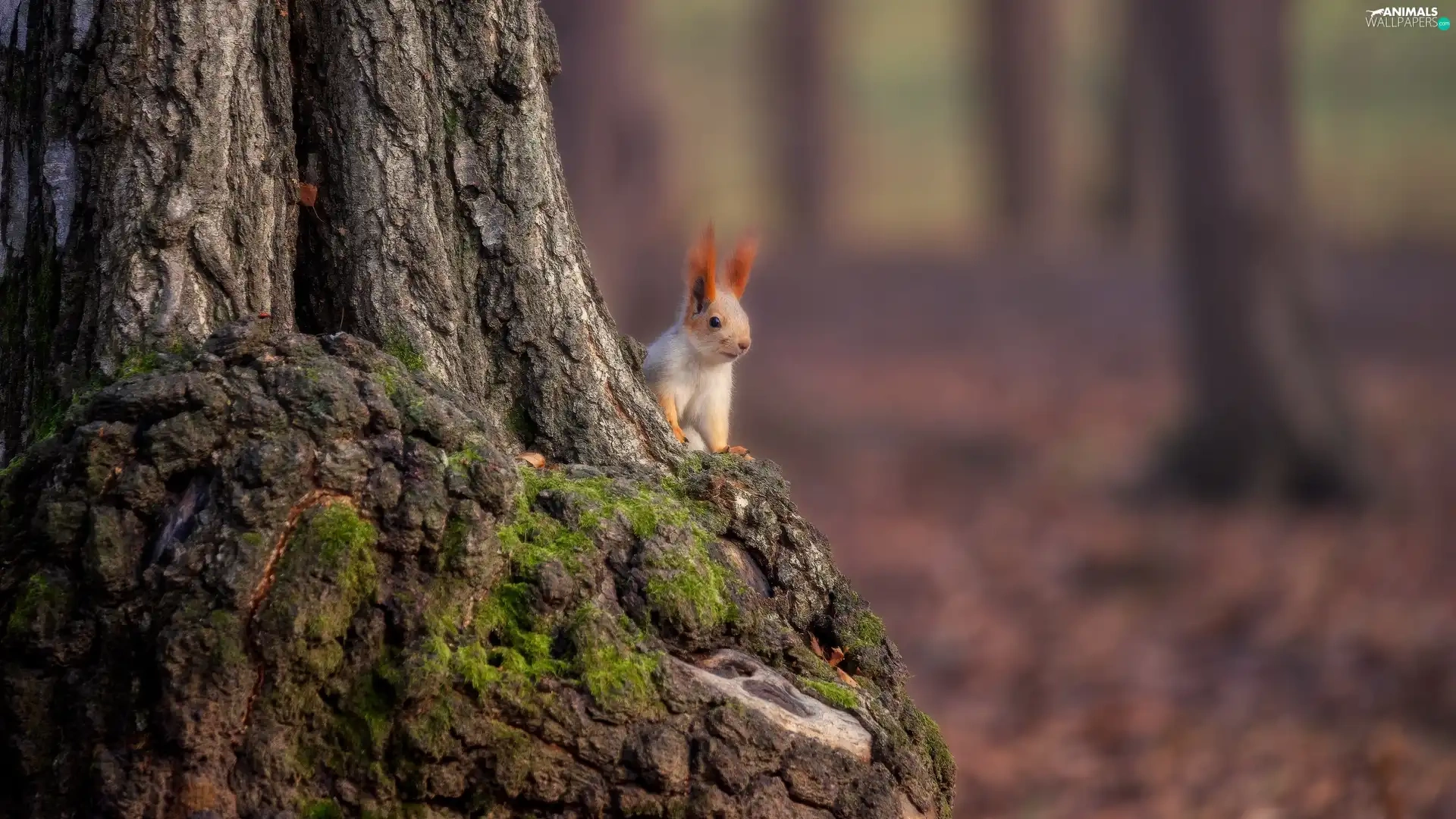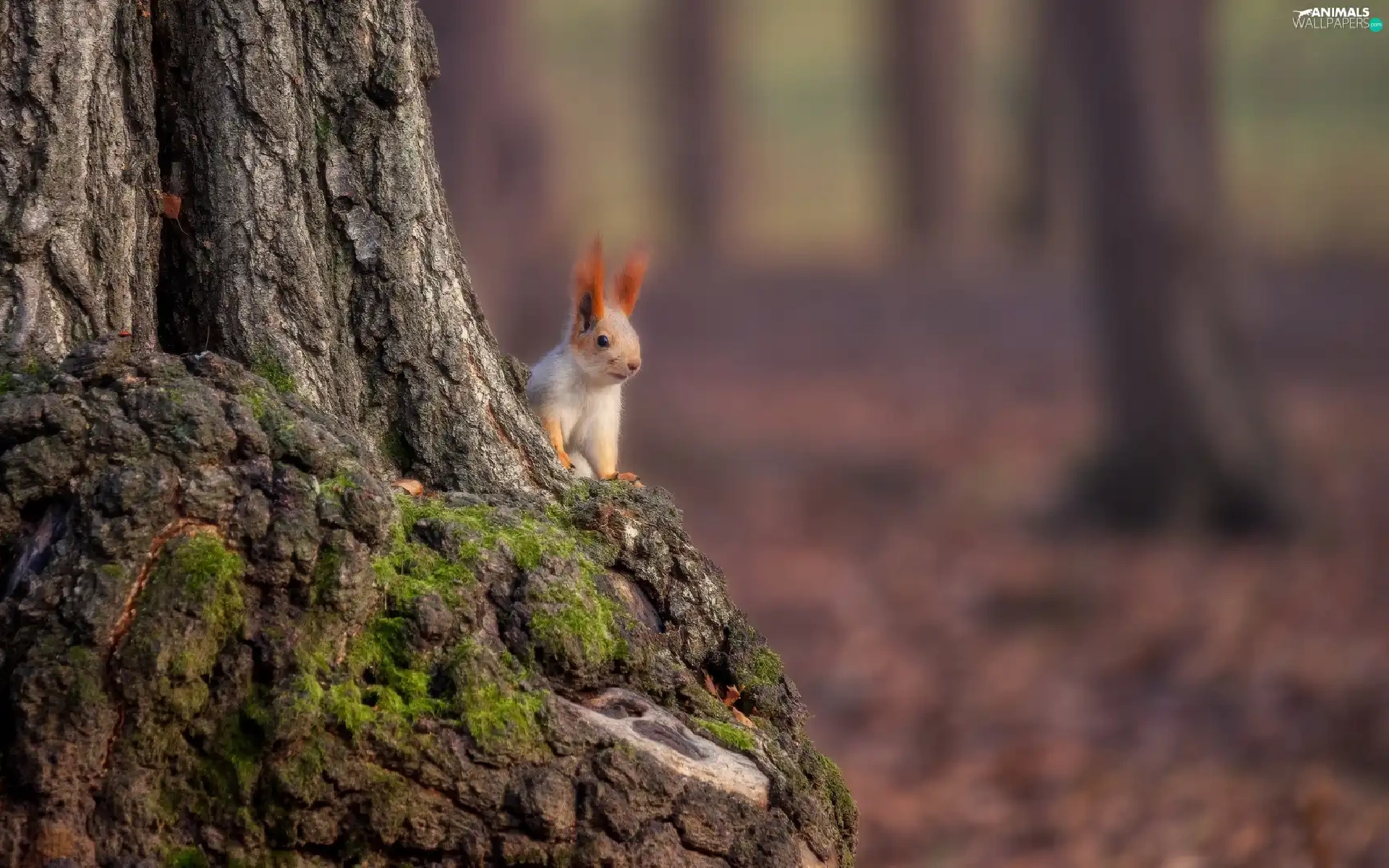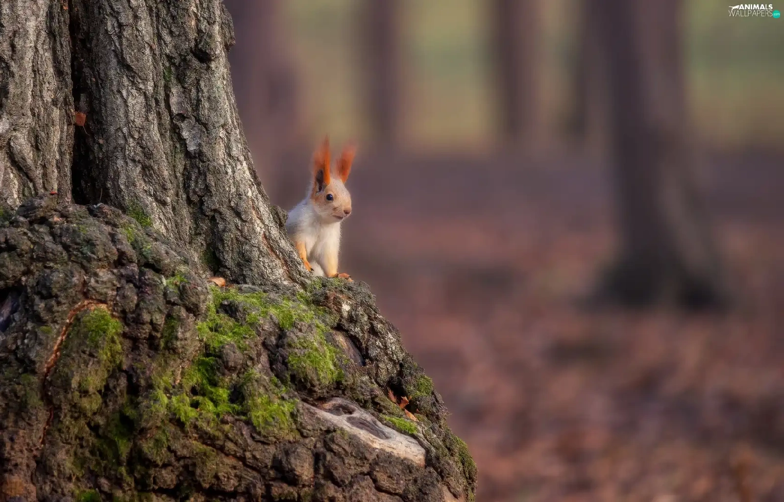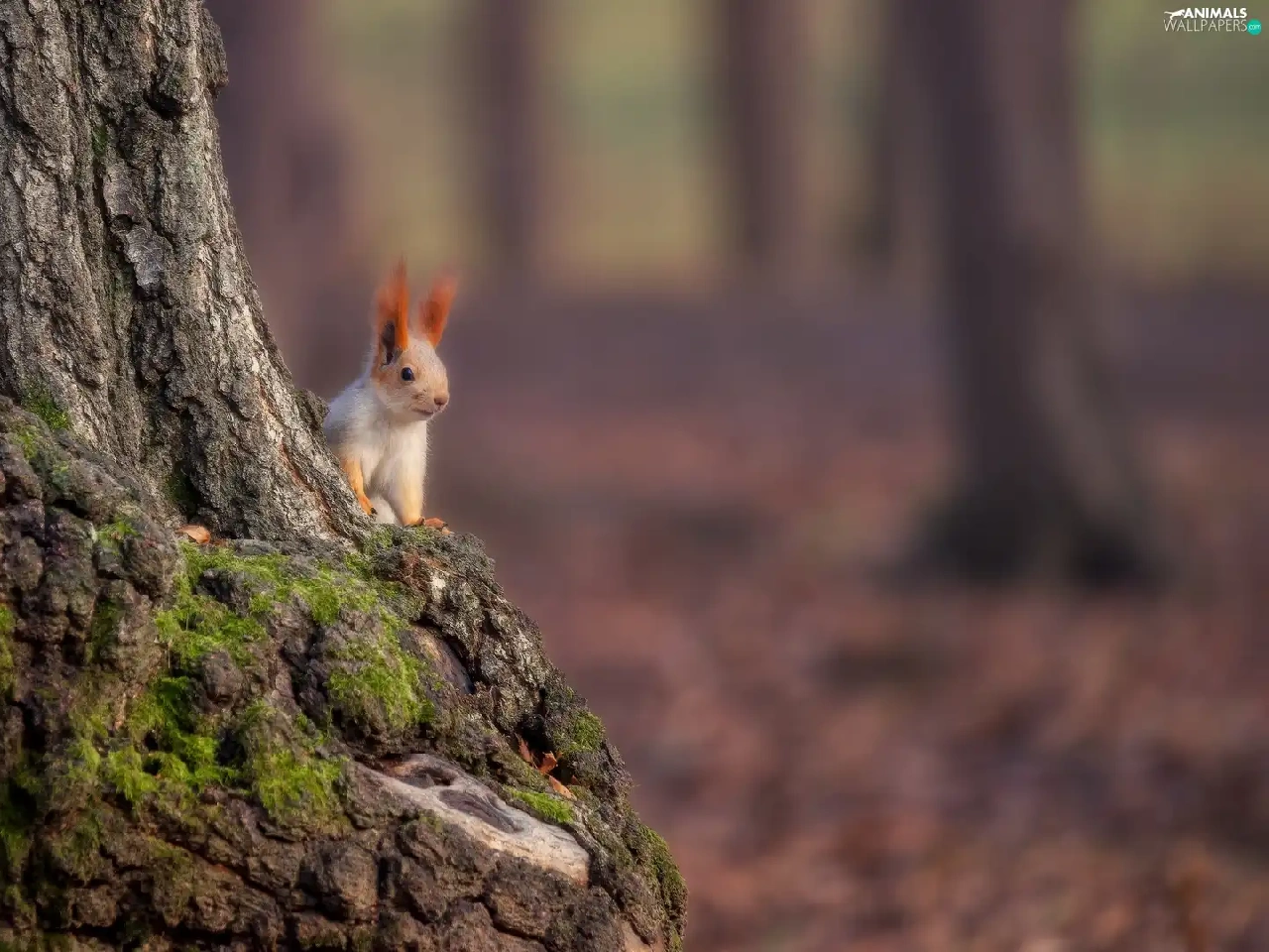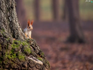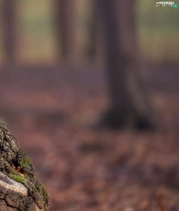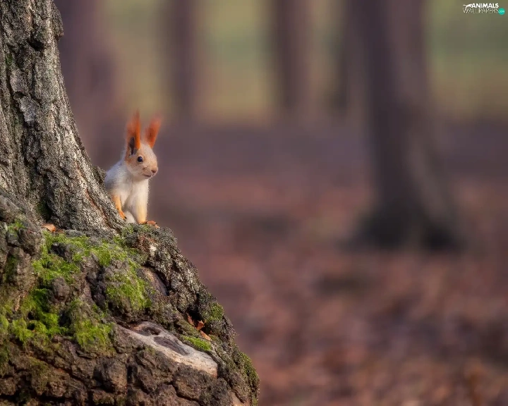 squirrel, trunk, trees