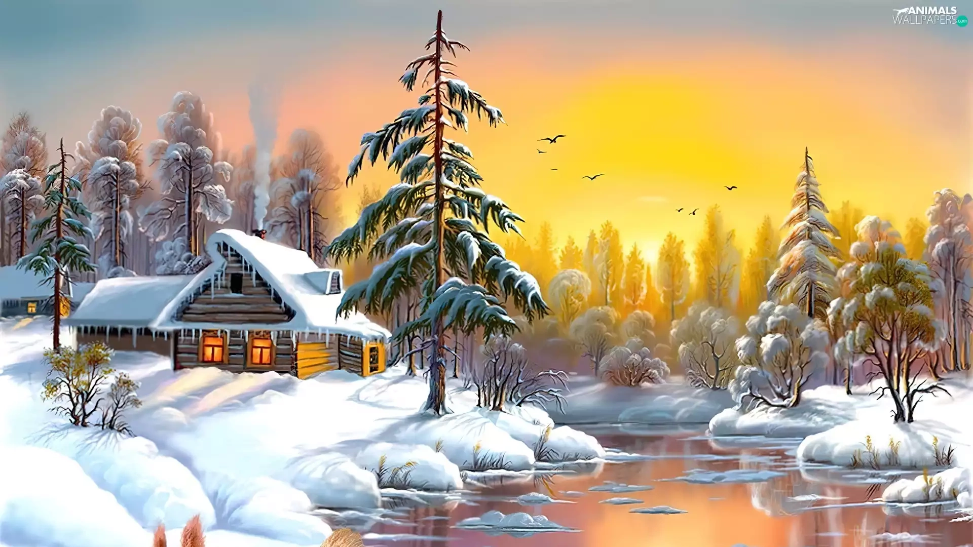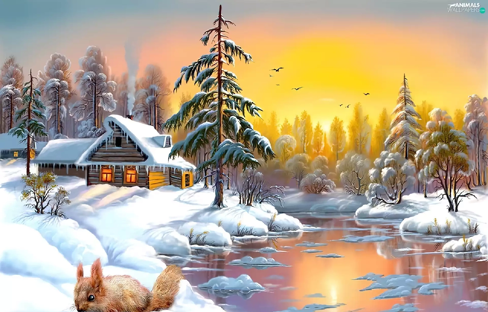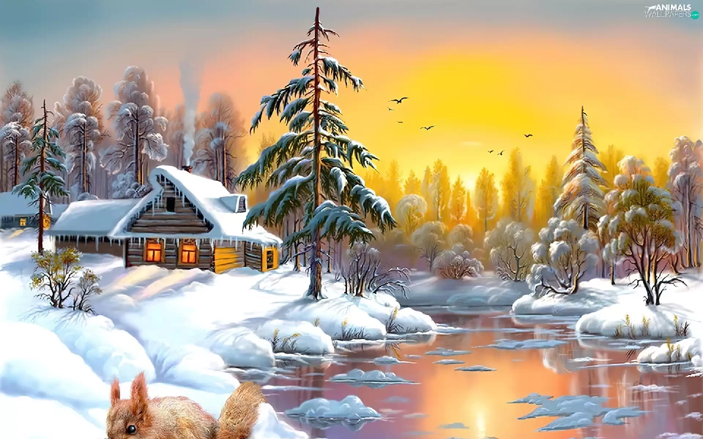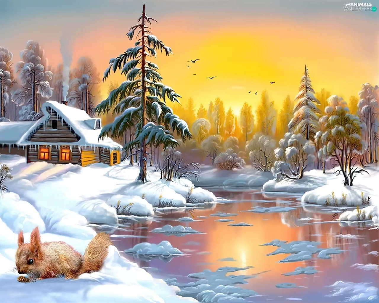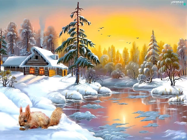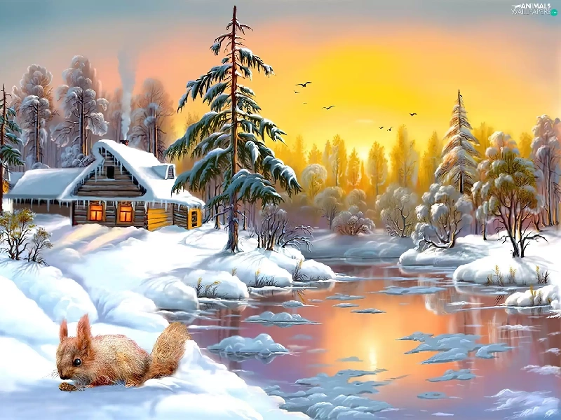 winter, Home, River, squirrel