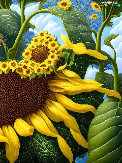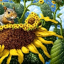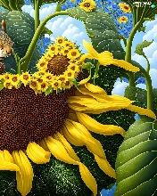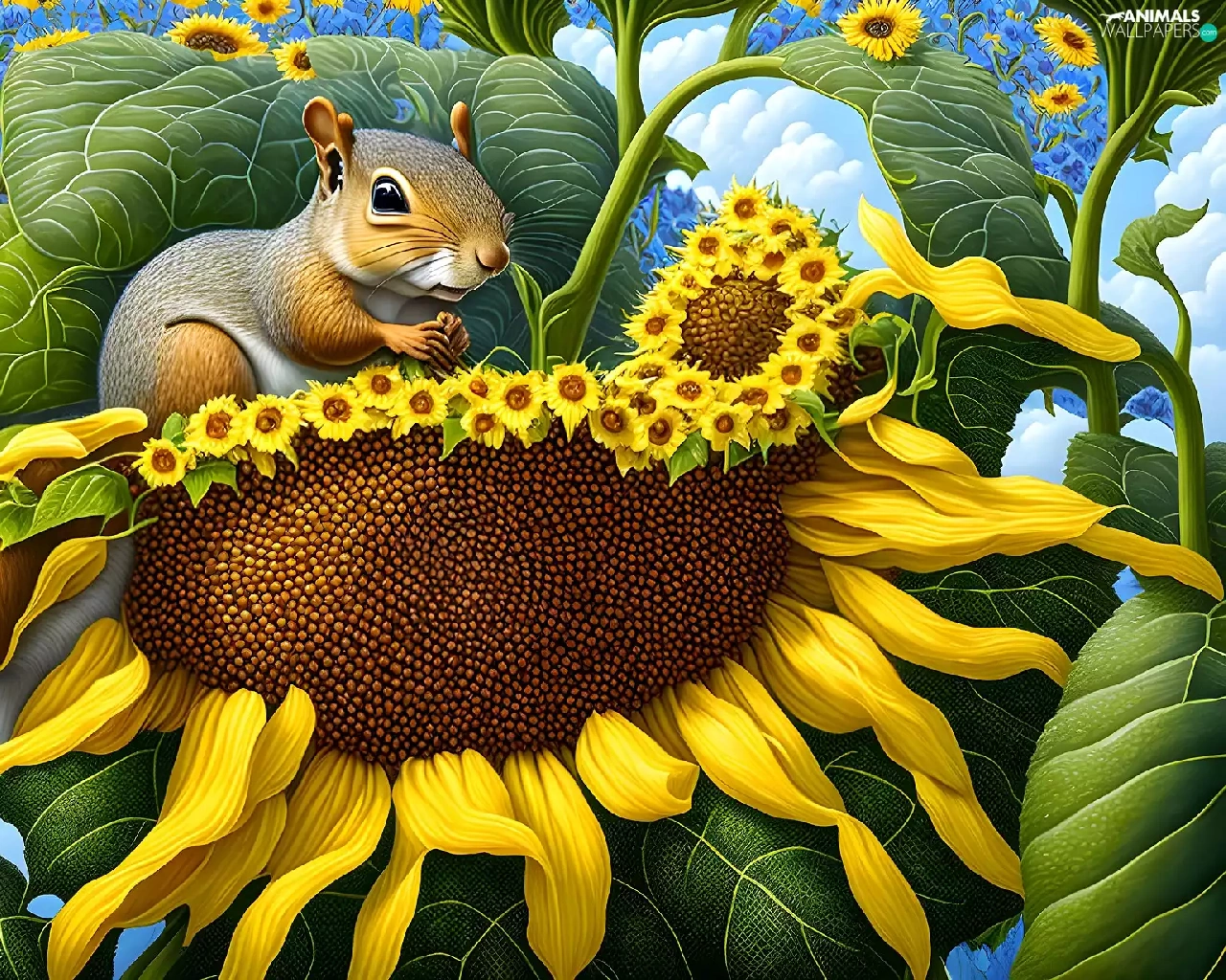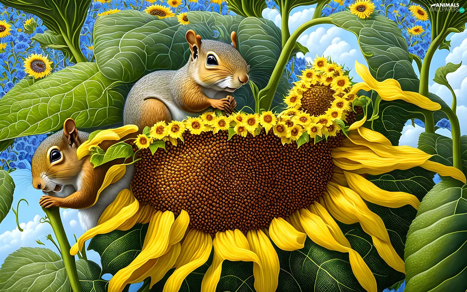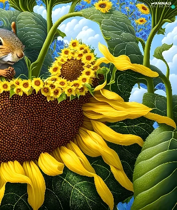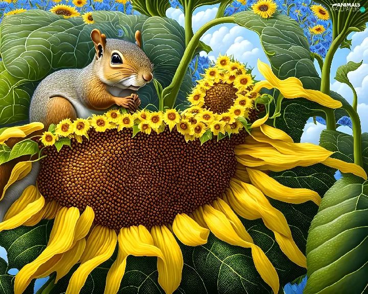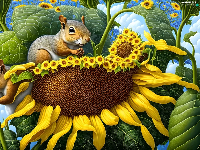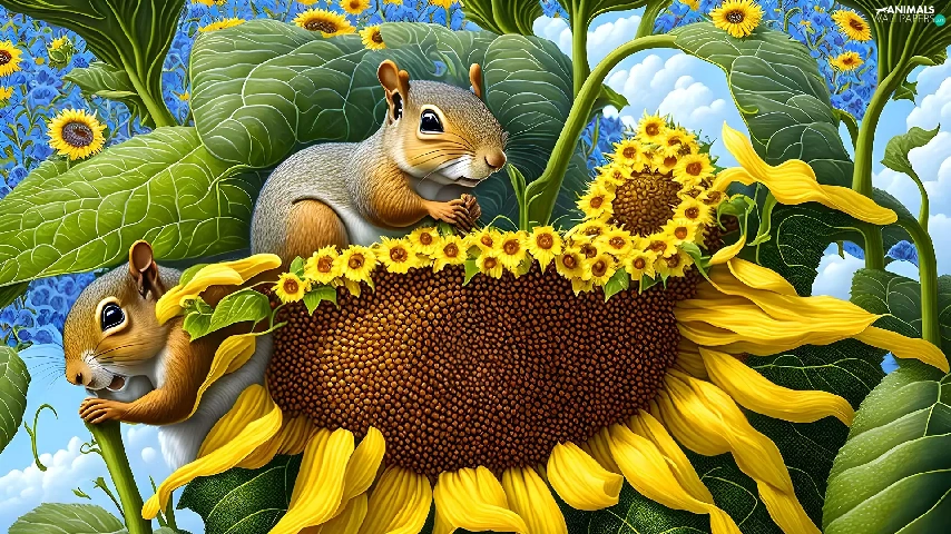 Two, Sunflower, graphics, squirrels