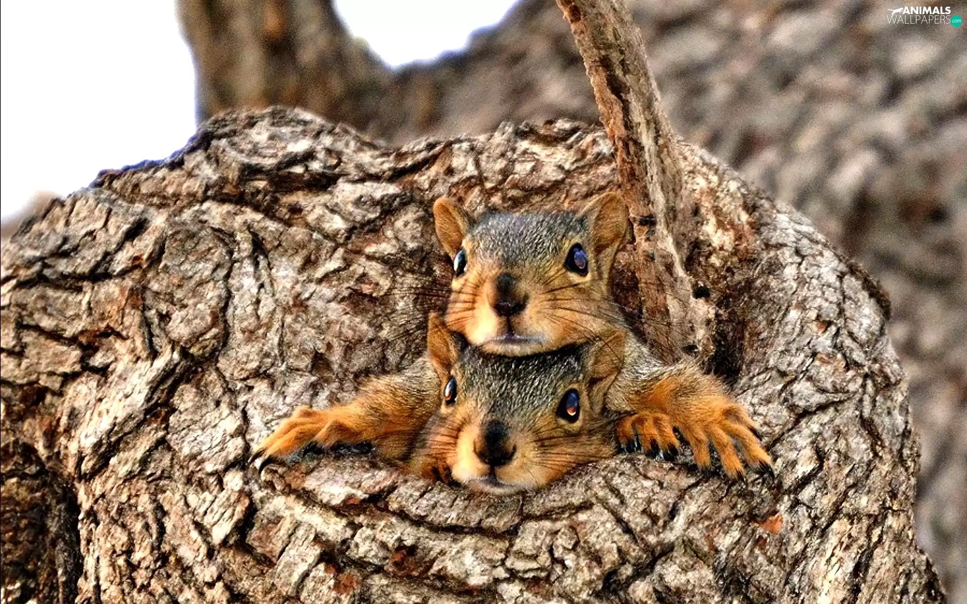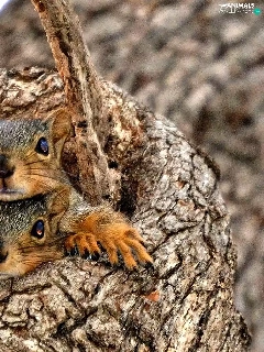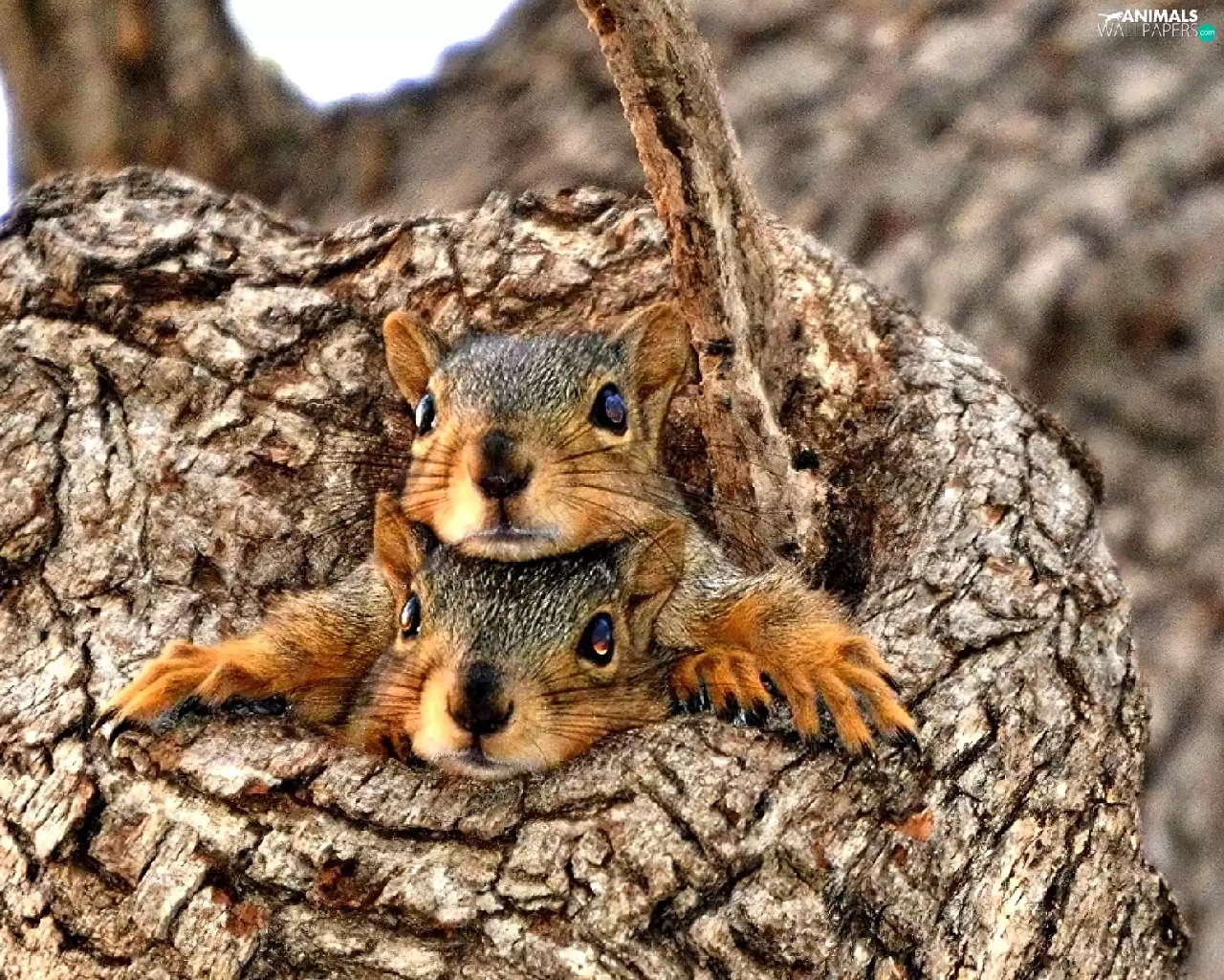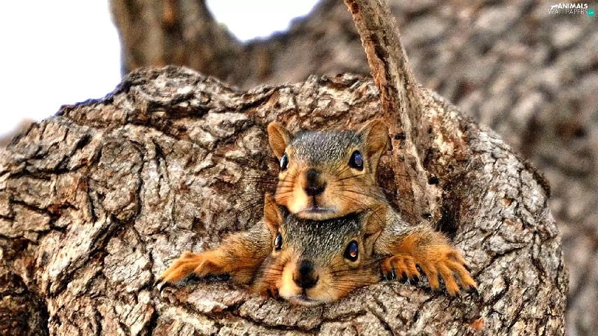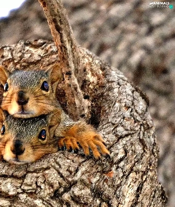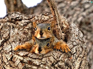 Two, trees, hide, squirrels